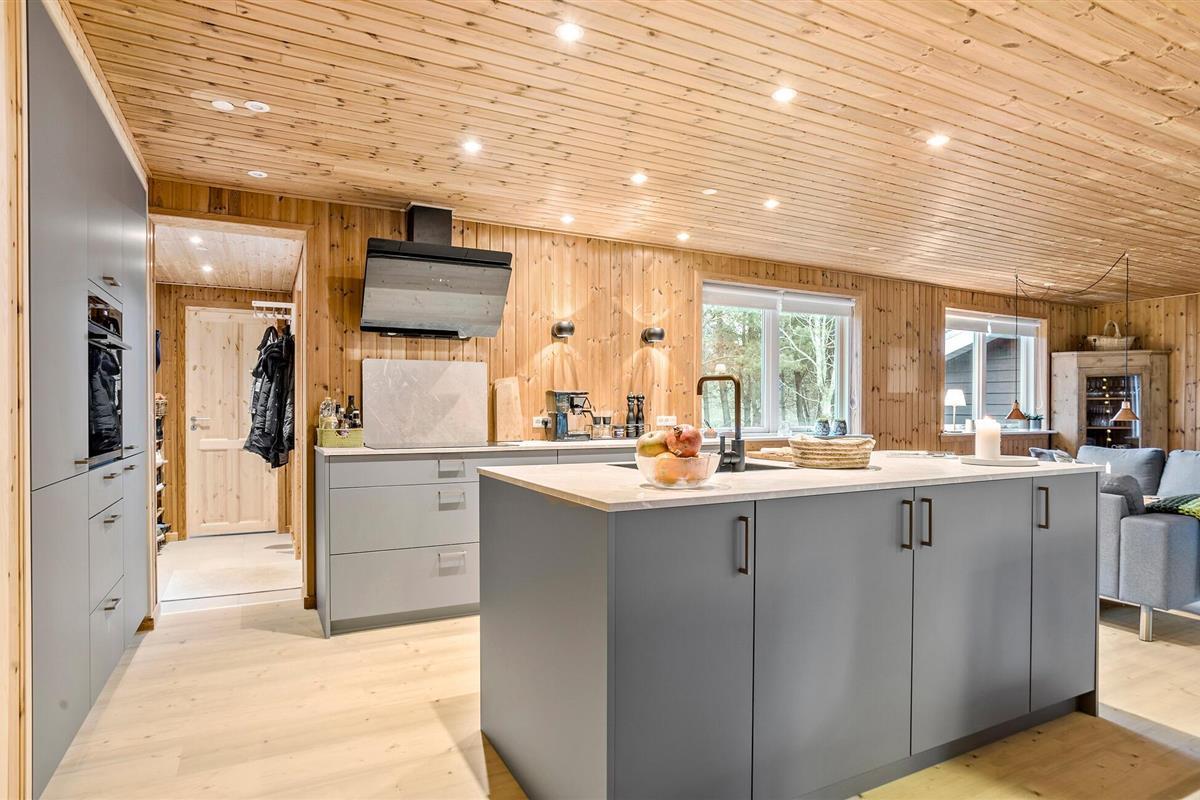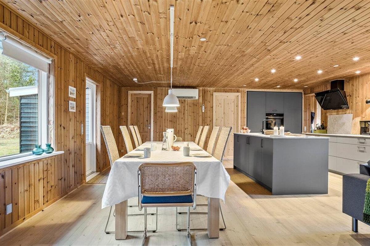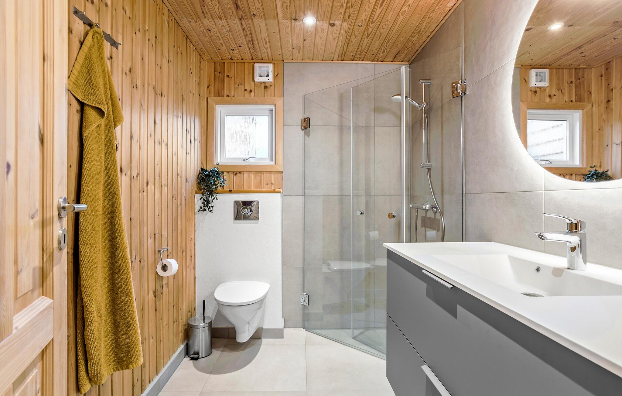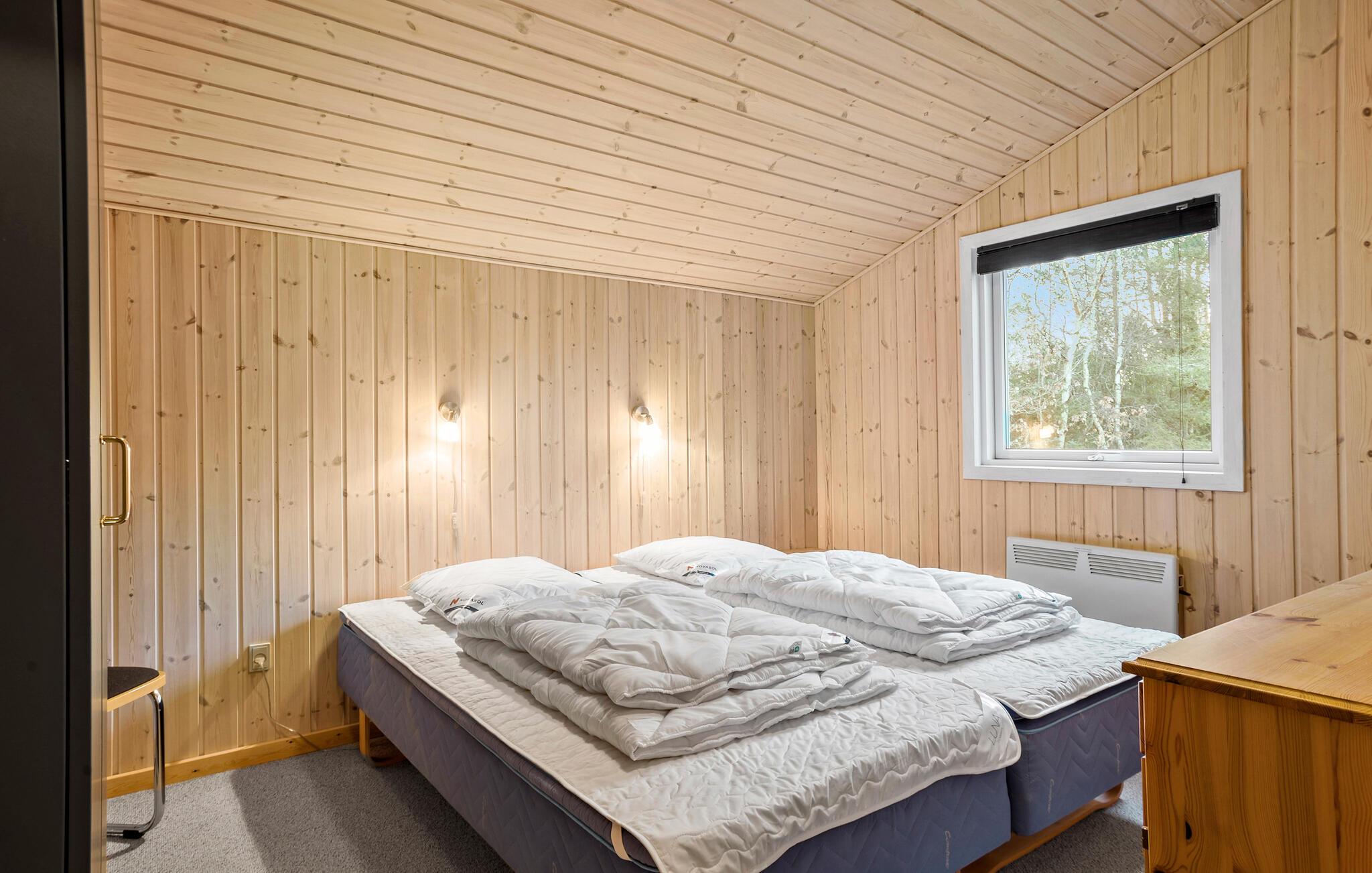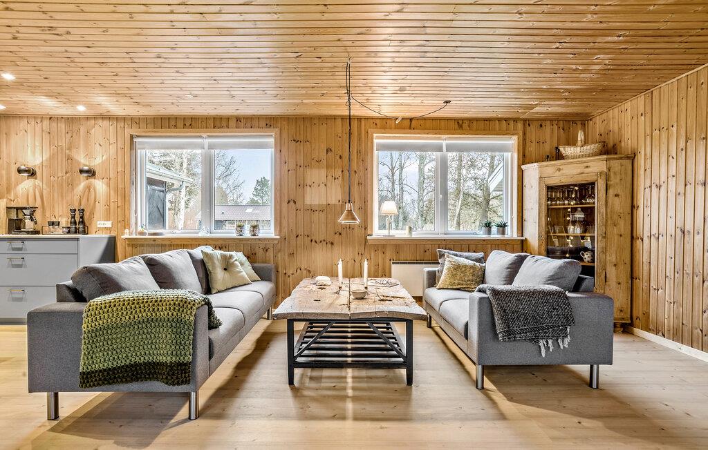 Stap binnen en ervaar het gezellige huis, dat moderniteit combineert met klassieke houten lambrisering. Binnen vind je een goed doordachte indeling met slaapgedeeltes aan beide uiteinden van het huis, perfect voor grote gezinnen of groepen. De lichte, goed uitgeruste keuken nodigt uit om samen te koken, terwijl de open woonkamer gezelligheid en ontspanning belooft.