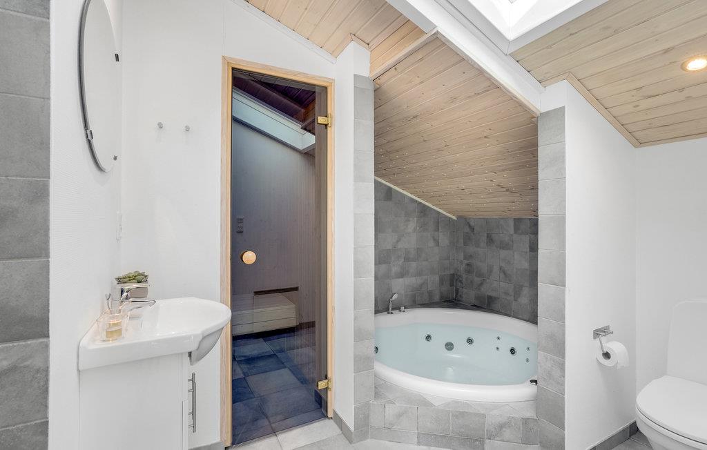 Ruim vakantiehuis nabij Bratten Strand met sauna, whirlpool, speeltoestellen en vlakbij zee.