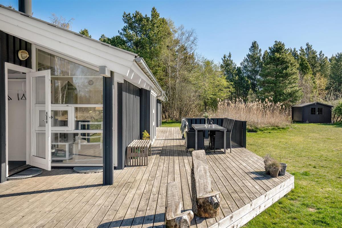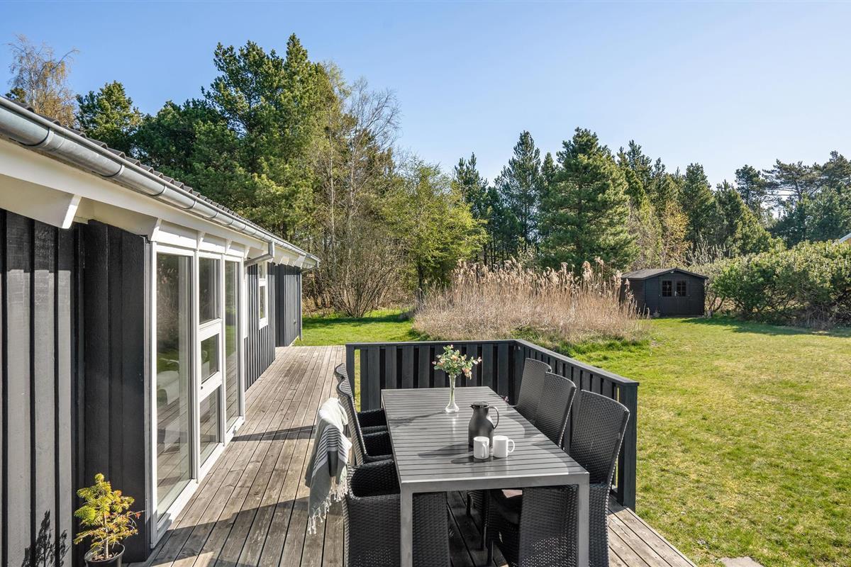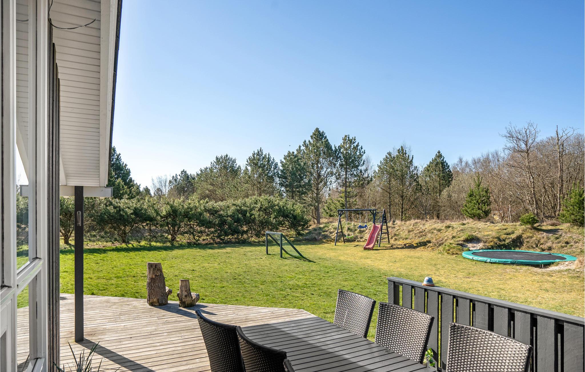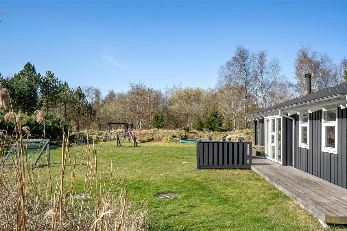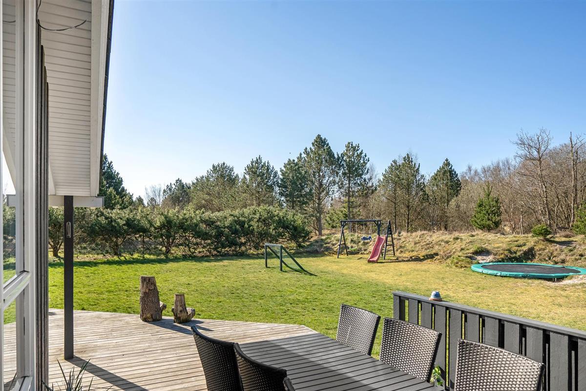 Buiten vindt u een geweldig terras dat u direct verbindt met de door bomen omgeven tuin. Hier wachten verschillende speeltoestellen op de kinderen - dus er is hier voor elke stemming en voor elk weer iets te doen, en dan is er natuurlijk het nabijgelegen strand, dat lonkt met zwemplezier, lange wandelingen en een droomachtig uitzicht op de horizon.