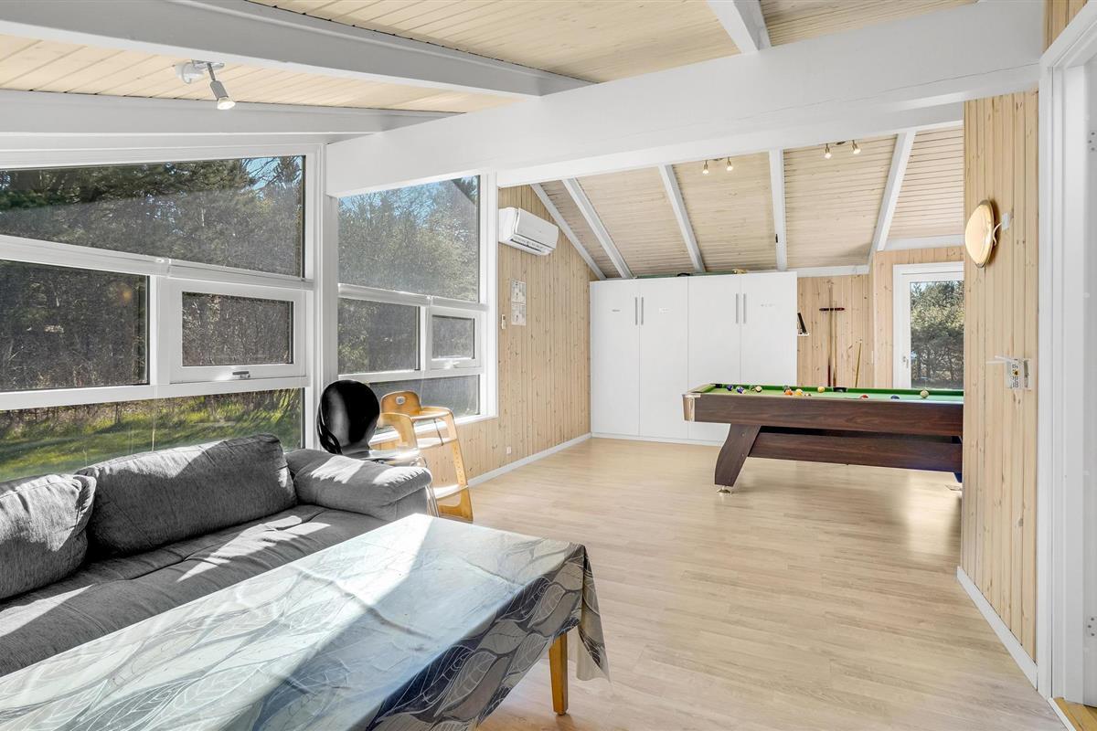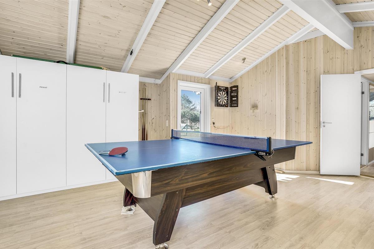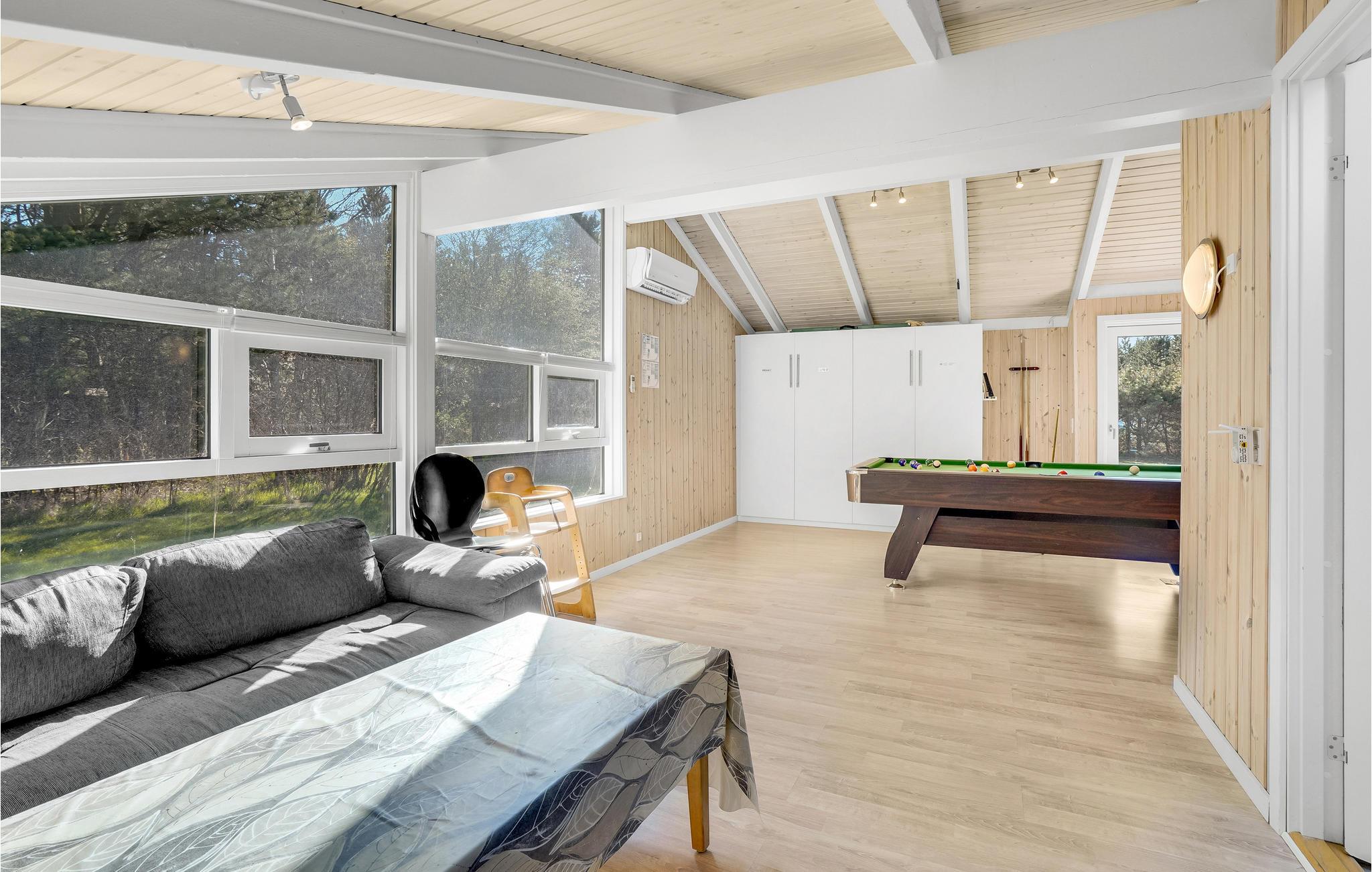 U verblijft op een prachtig, groot natuurperceel niet ver van het strand aan de baai van Aalbek. Hier heeft u alle voorwaarden voor een zowel ontspannende als bewogen vakantie. Terwijl u een ware oase van welzijn vindt dankzij de klassieke Scandinavische zomerhuisinrichting met grote, open keuken/woonkamer en open haard, en ook een whirlpool en sauna op u wachten, kunt u zich ook meten aan de tafeltennistafel of het biljart.