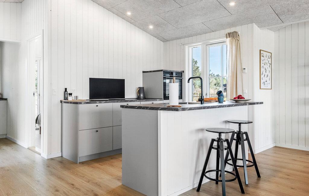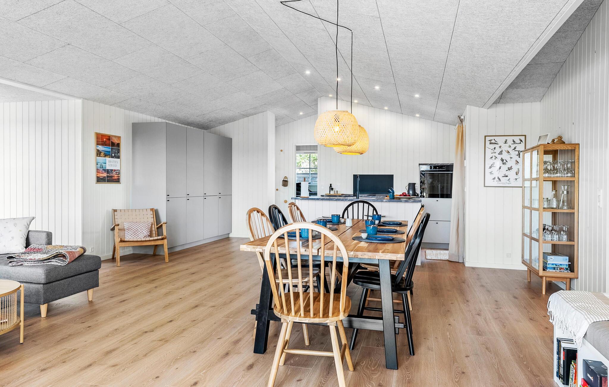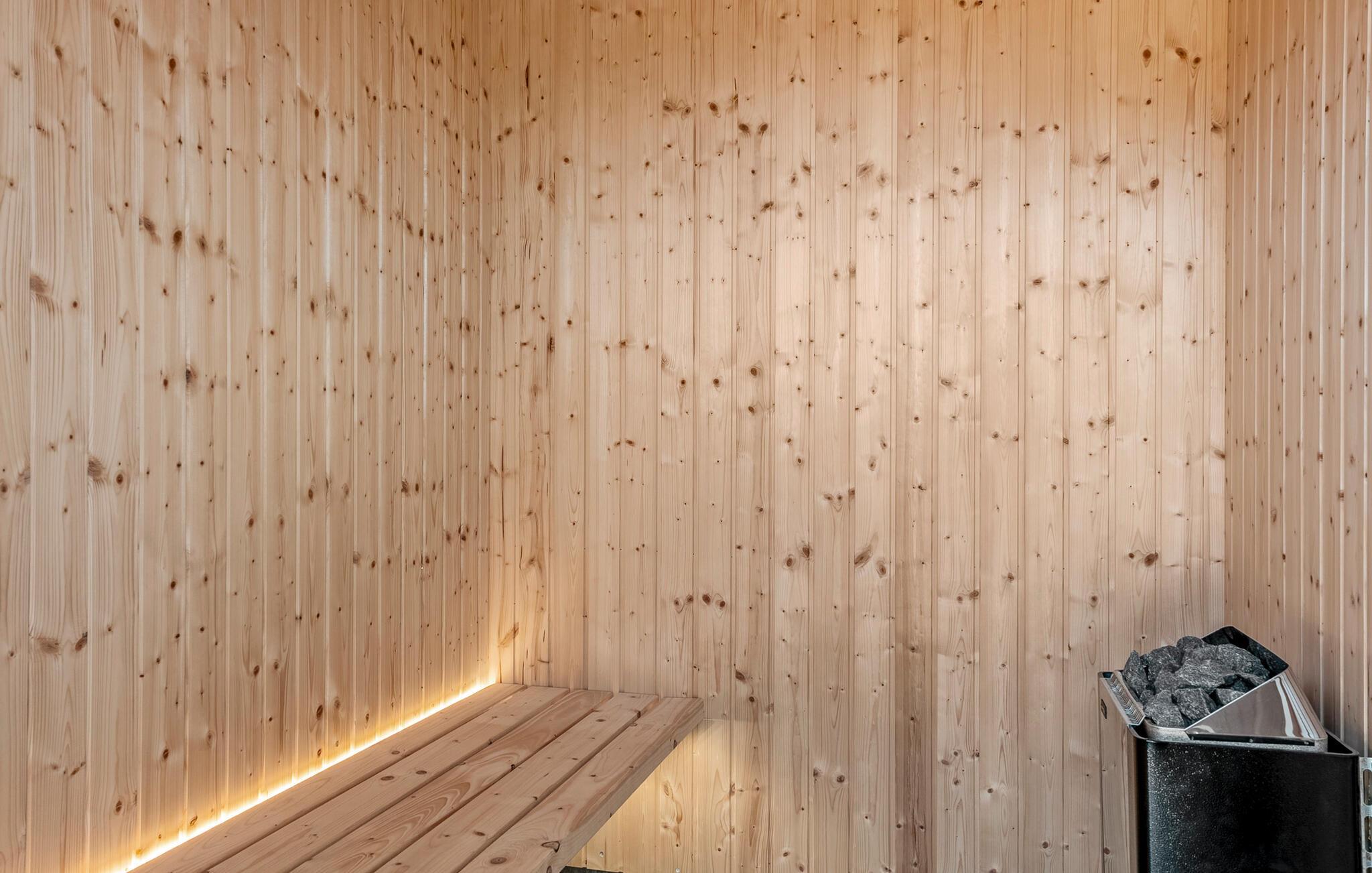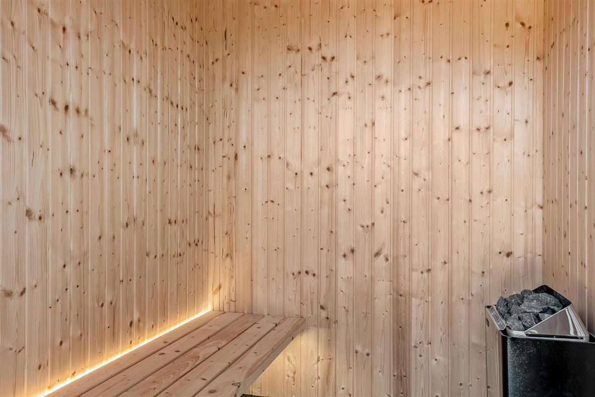 Een geslaagde combinatie van helder design en lichtgekleurd hout geeft dit huis een uitnodigende en harmonieuze uitstraling. Ramen van vloer tot plafond zorgen voor veel helder daglicht, terwijl de goed uitgeruste keuken uitnodigt om samen te koken. Hier vind je een plek waar je tot rust kunt komen en ontspannen dagen kunt doorbrengen, of je nu naar muziek luistert, kletst of opwarmt in de sauna.