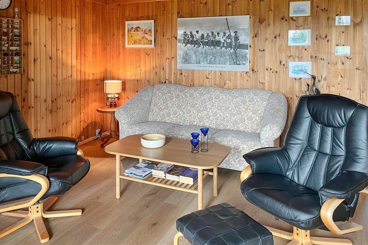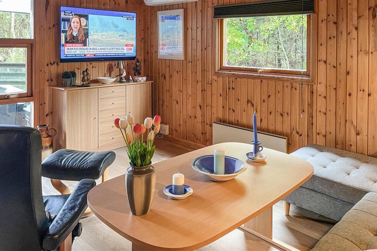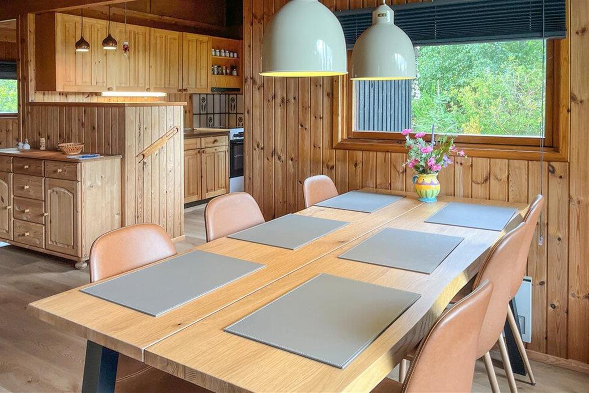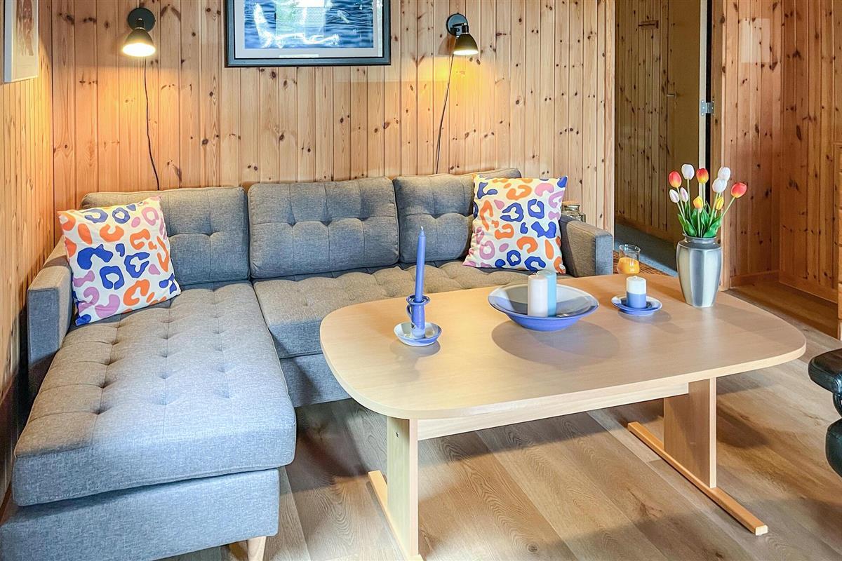 Breng een ontspannen vakantie door in dit typisch Deense vakantiehuis, dat een bijzonder gezellige sfeer biedt met zijn natuurlijke ligging en warme houten uitstraling. Binnen wacht je een gezellige woonsfeer met rustieke charme. Maak het jezelf gemakkelijk in de gezellige fauteuils of op de hoekbank, lees een boek of kijk een film. De wanden met houten panelen creëren een warm, uitnodigend gevoel van ruimte. De open keuken is functioneel uitgerust en grenst aan het eetgedeelte met een grote tafel waar je samen kunt dineren.