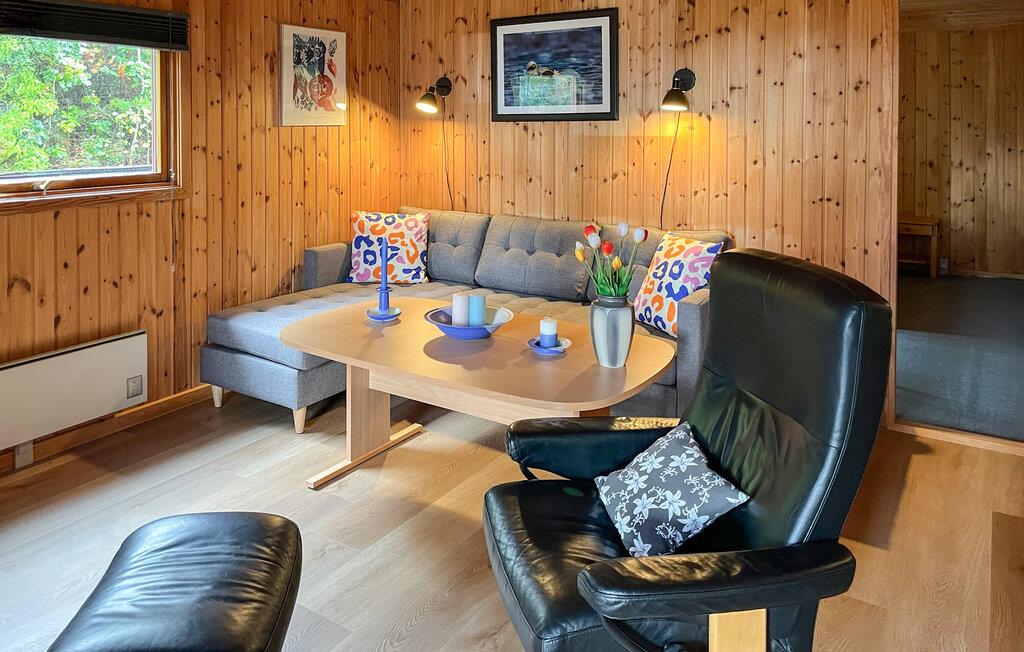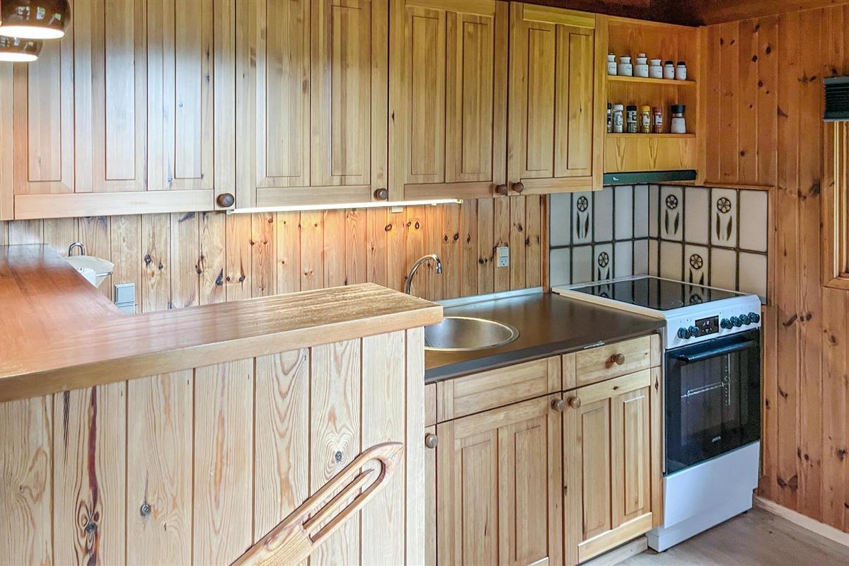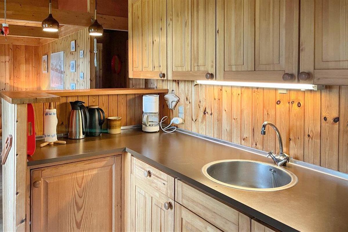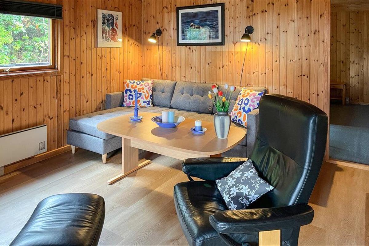 Breng een ontspannen vakantie door in dit typisch Deense vakantiehuis, dat een bijzonder gezellige sfeer biedt met zijn natuurlijke ligging en warme houten uitstraling. Binnen wacht je een gezellige woonsfeer met rustieke charme. Maak het jezelf gemakkelijk in de gezellige fauteuils of op de hoekbank, lees een boek of kijk een film. De wanden met houten panelen creëren een warm, uitnodigend gevoel van ruimte. De open keuken is functioneel uitgerust en grenst aan het eetgedeelte met een grote tafel waar je samen kunt dineren.