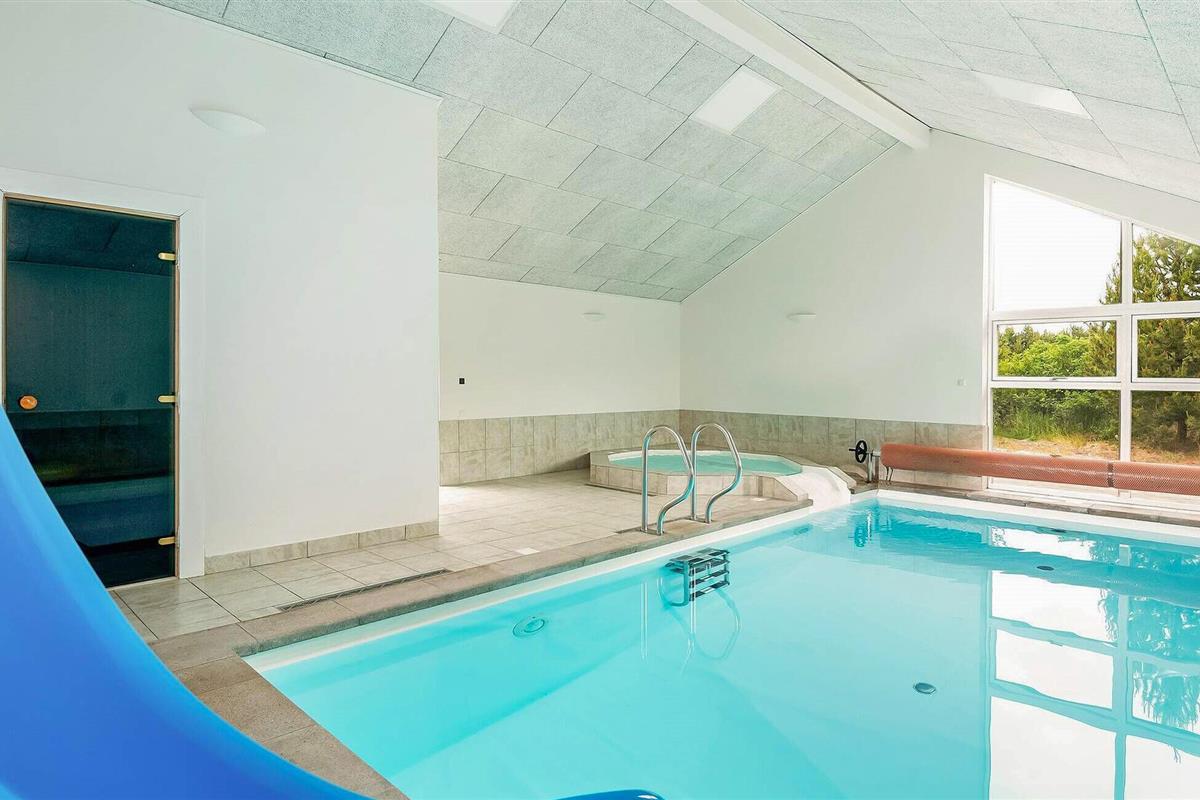 Luxe vakantiehuis in Bratten Strand met binnenzwembad, sauna en speeltoestellen, vlak bij het kindvriendelijke strand.