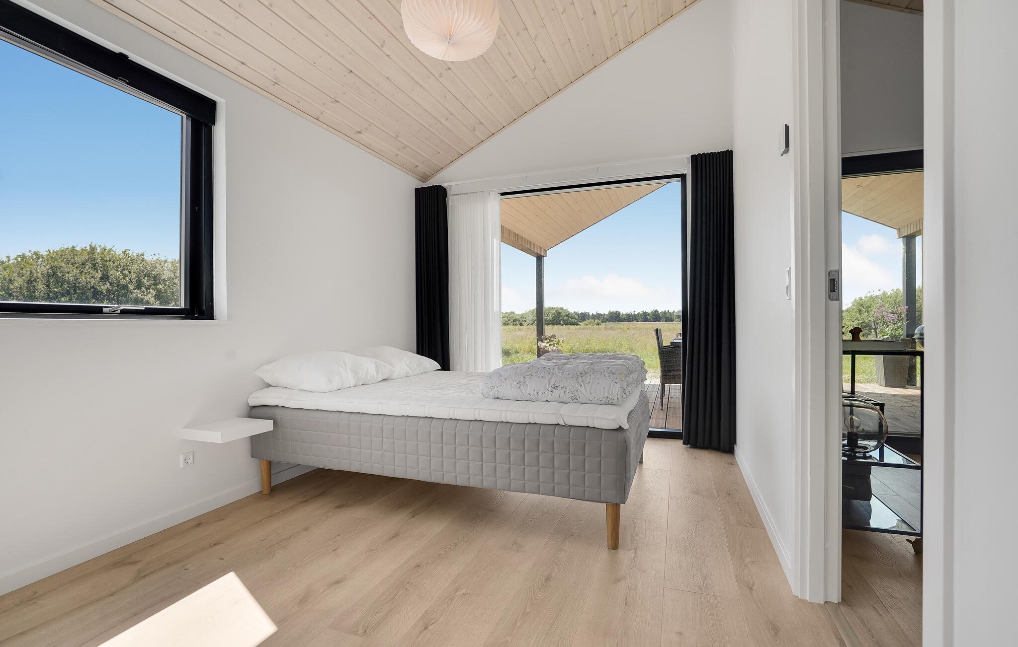 In slechts 800 m bereikt u het kilometerslange zandstrand Bratten, waar u met z'n allen kunt vliegeren terwijl u wandelt in de pure natuur. De steiger die midden in zee uitkomt, nodigt des te meer uit tot een duik in het koude water. Als u genoeg heeft van deze natuurervaringen, ligt de havenstad Frederikshavn ook op slechts 9 km van uw accommodatie, evenals andere kleine dorpjes.