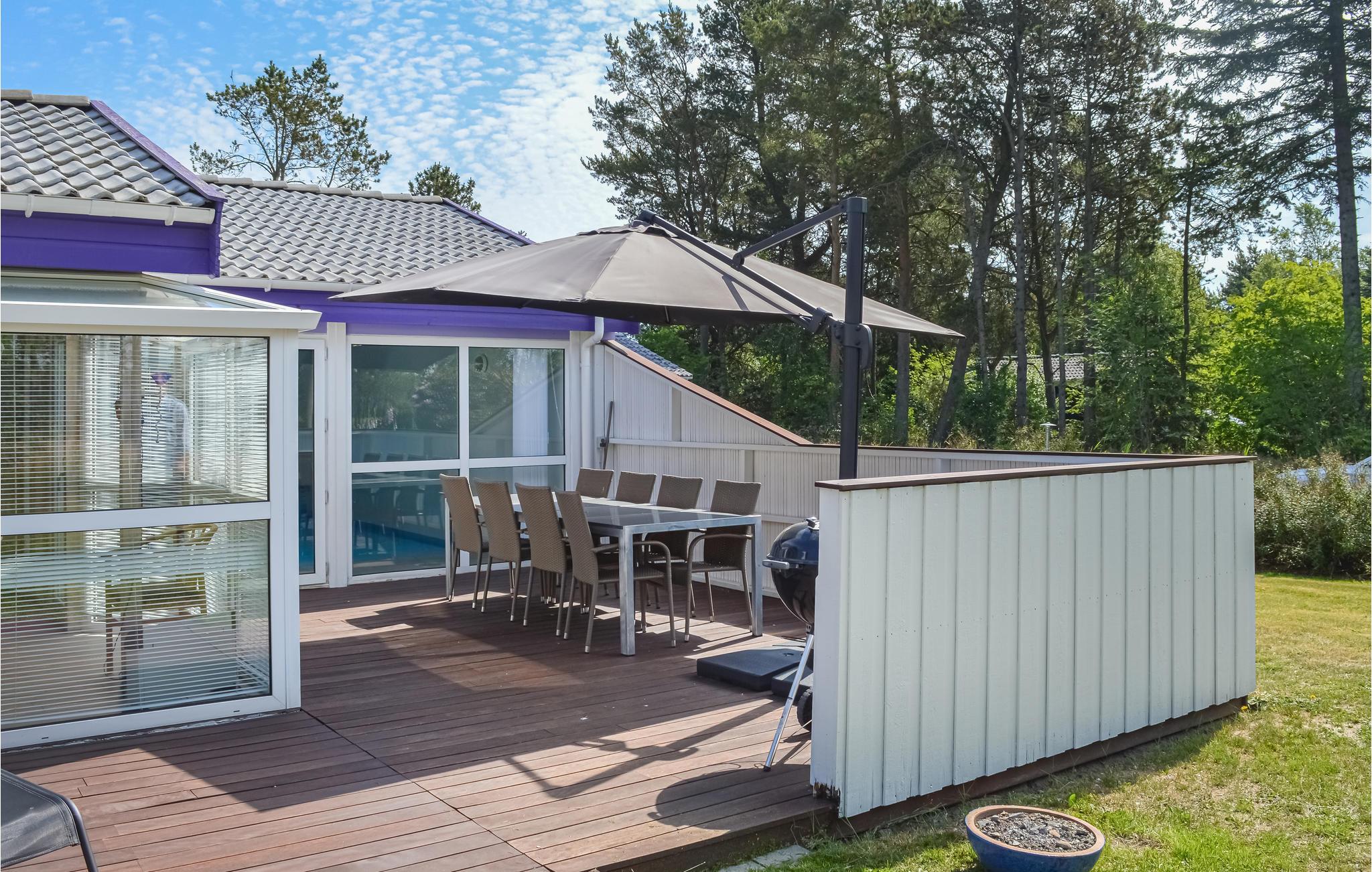 Dit architectonisch aantrekkelijke vakantiehuis ligt op een groot natuurgrondstuk in de buurt van het strand van Bratten. De vele ramen en de lichtgekleurde muren en plafonds creëren een vriendelijke en lichtdoorstroomde sfeer. Het creatieve ontwerp van de buitenkant wordt aangevuld met doordachte meubels in warme kleuren die het huis een klassieke zomerhuisje-gezelligheid geven. Je kunt je verheugen op tal van prachtige voorzieningen, waaronder een groot zwembad met een waterglijbaan, een whirlpool en een sauna. Het huis heeft ook een activiteitenruimte.