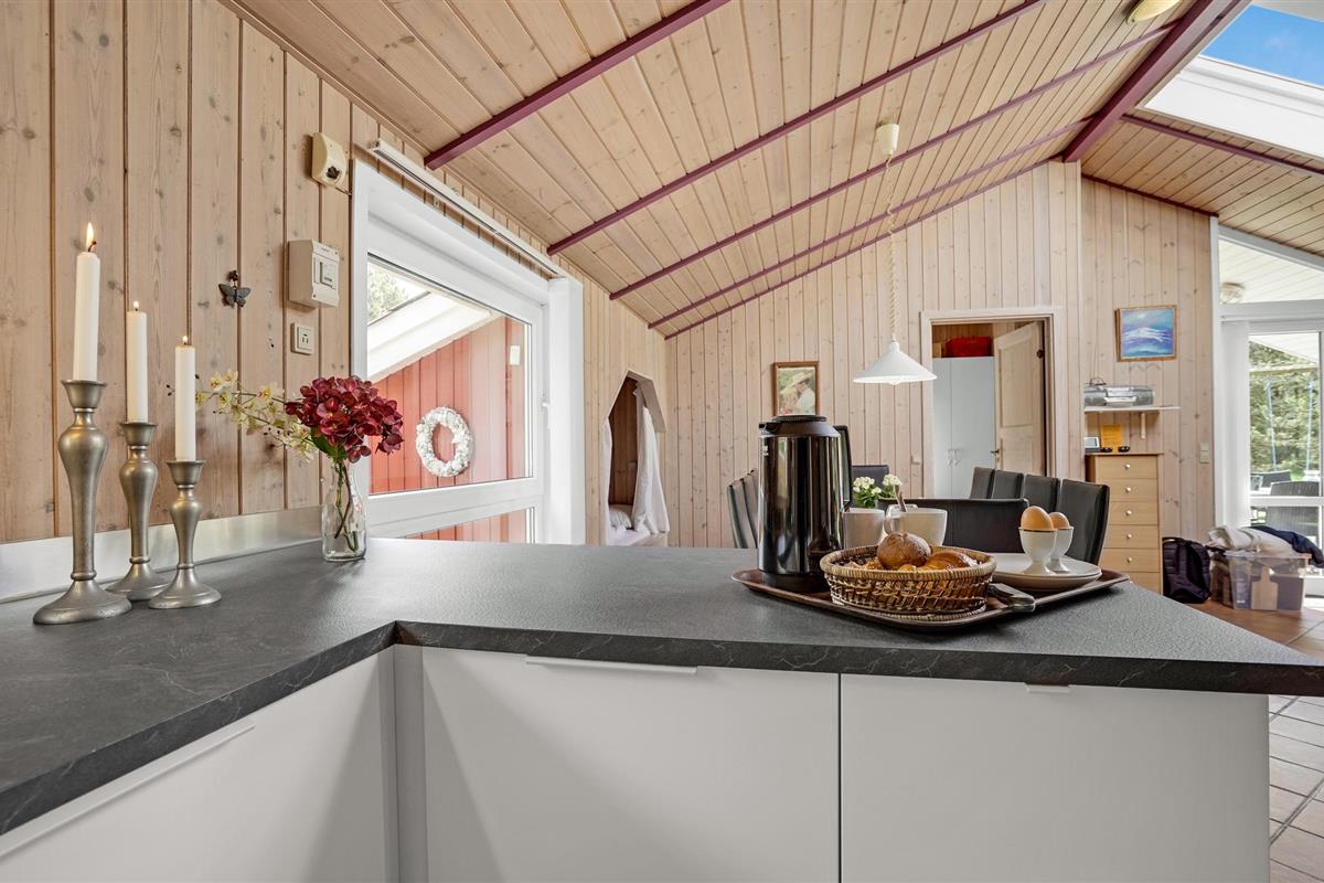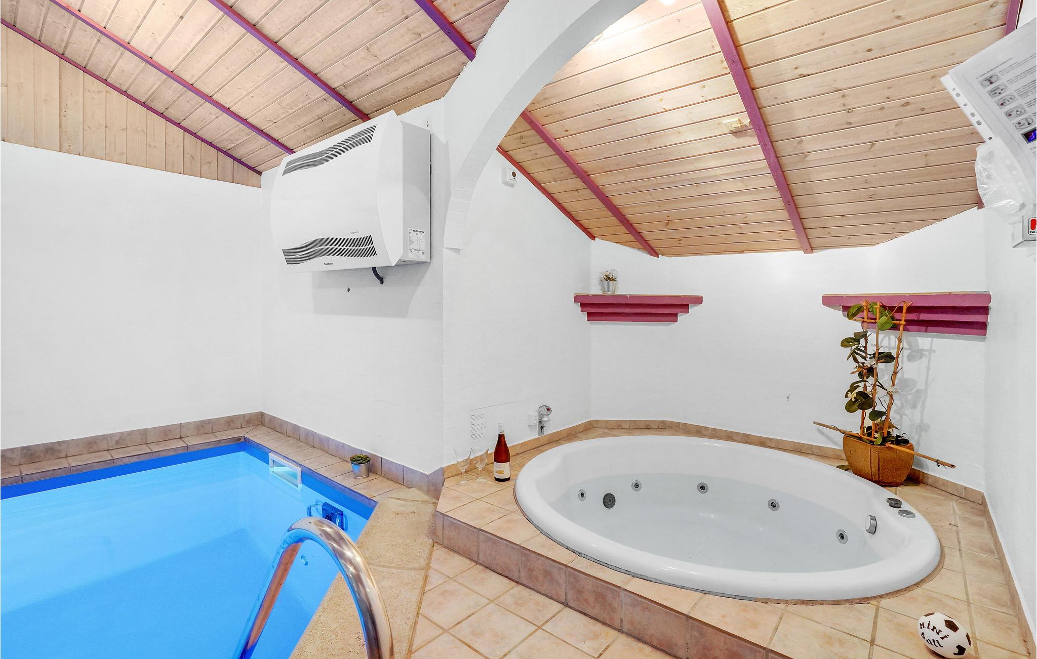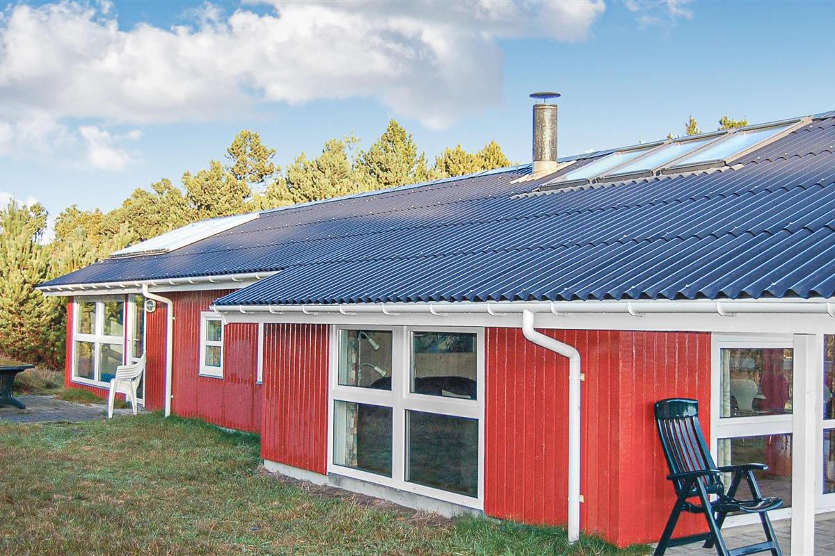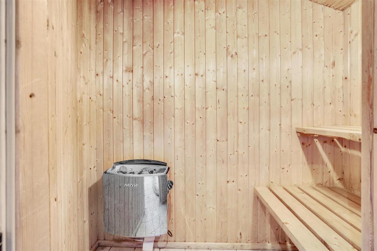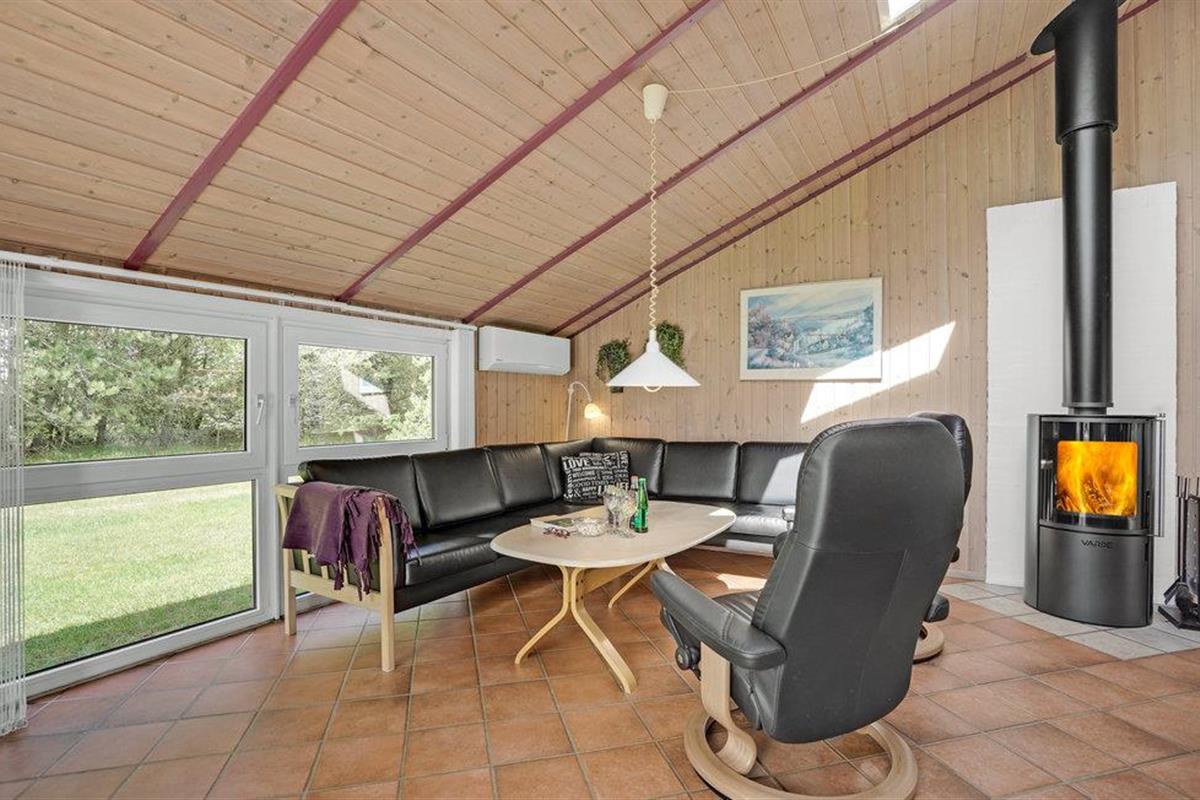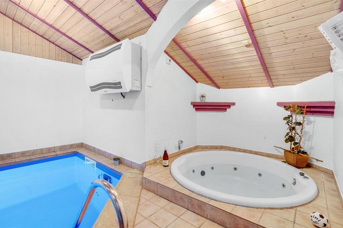 Ruim en stijlvol houten vakantiehuis met binnenzwembad, sauna en nabij kindvriendelijk zandstrand in Bratten, Denemarken.