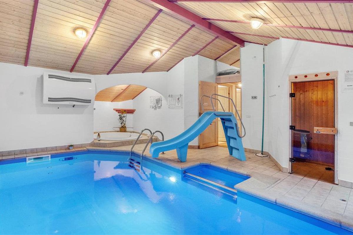Je gezellig ingerichte vakantiehuis biedt genoeg ruimte voor twee gezinnen. Het woongedeelte is uitgerust met een uitnodigende zithoek, een houtkachel en meubilair van hoge kwaliteit. De open verbinding tussen de woonkamer en keuken en de indrukwekkende dakconstructie zorgen voor een luchtige en aangename sfeer. Een hoogtepunt is het zwembadgedeelte, met een groot zwembad inclusief een waterglijbaan en een apart kinderbad. In een apart gedeelte van de zwembadruimte bevindt zich een "grot" met een whirlpool.