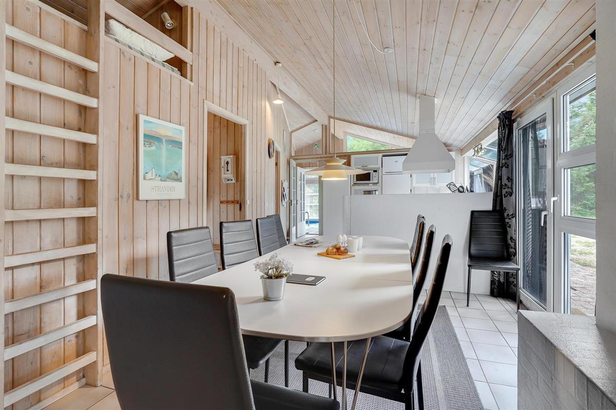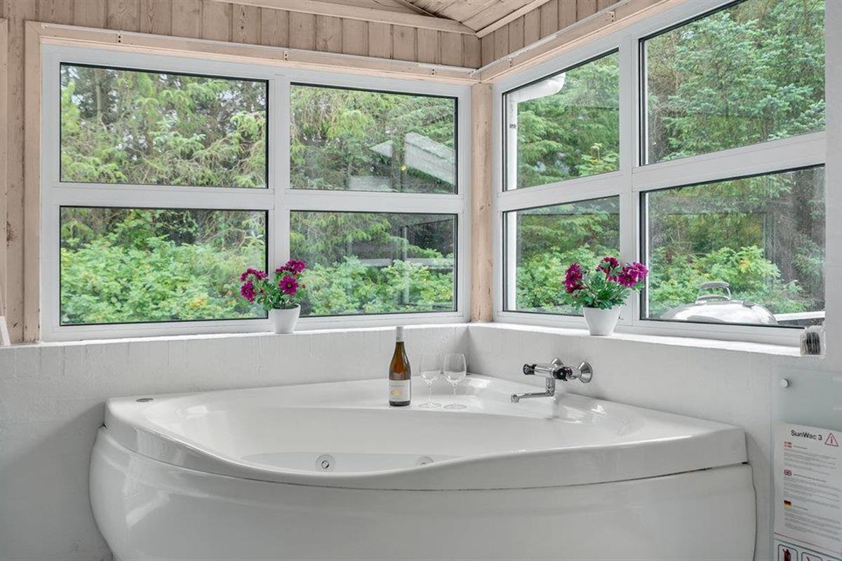 Dit mooie luxe huis in verspringende niveaus ligt in het mooie Bratten tussen de gezellige vissersplaatsen Ålbæk en Strandby in Noord-Jutland op een groot natuurgrondstuk dicht bij het goede badstrand. Er zijn grote terrassen bij het huis waar u van de zon kunt genieten. Het huis biedt het hoogste comfort, zoals de zwembadruimte met zwembad, whirlpool en sauna. Natuurlijk zijn er ook twee badkamers met vloerverwarming. Het huis heeft ook een gezellige serre en een grote slaapzolder met een bankstel. Verder zijn er twee kleurentelevisies en twee stereo-installaties. Er zijn maar liefst 5 golfbanen binnen een straal van ca. 40 km. Hier kunt u goed vissen.