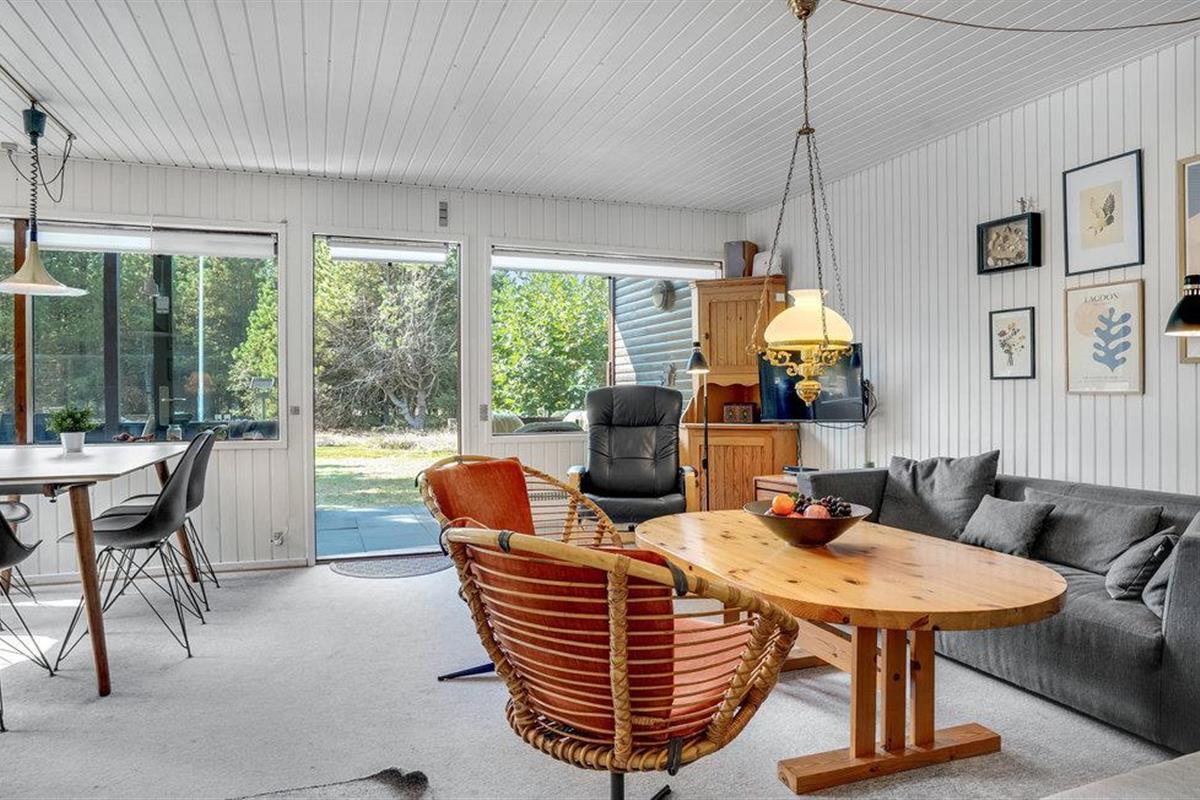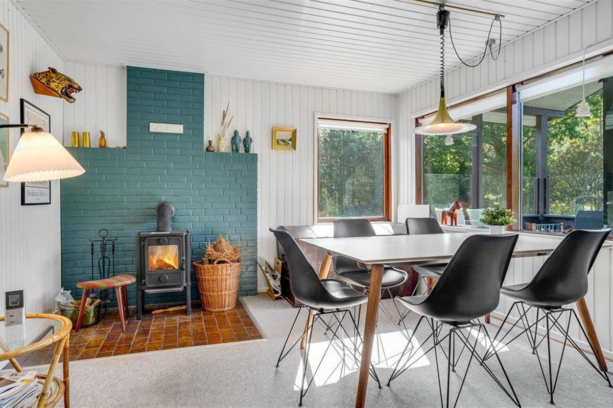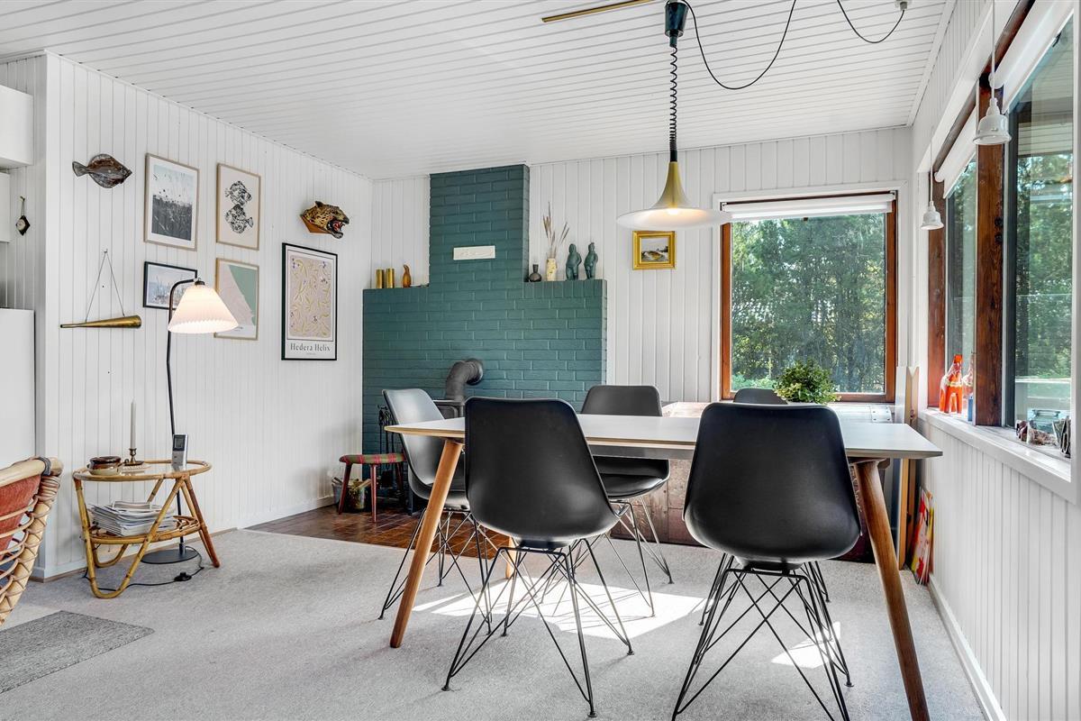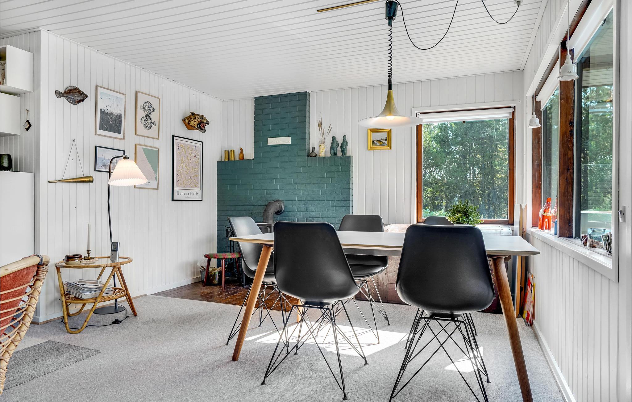 Dit gezellige vakantiehuis ligt op een ruim, met heide bedekt natuurperceel in de buurt van het strand van Bratten, in een prachtige omgeving dicht bij het Kattegat. Hier wachten onvergetelijke momenten op je in de open woonkamer, waar de keuken en woonkamer naadloos in elkaar overgaan en worden overspoeld met natuurlijk licht door de grote ramen. Maak het jezelf gemakkelijk met een goed boek of een bordspel voor de houtkachel en ontsnap aan het leven van alledag.