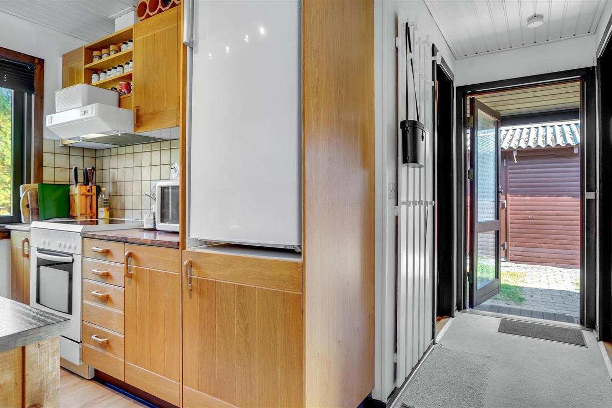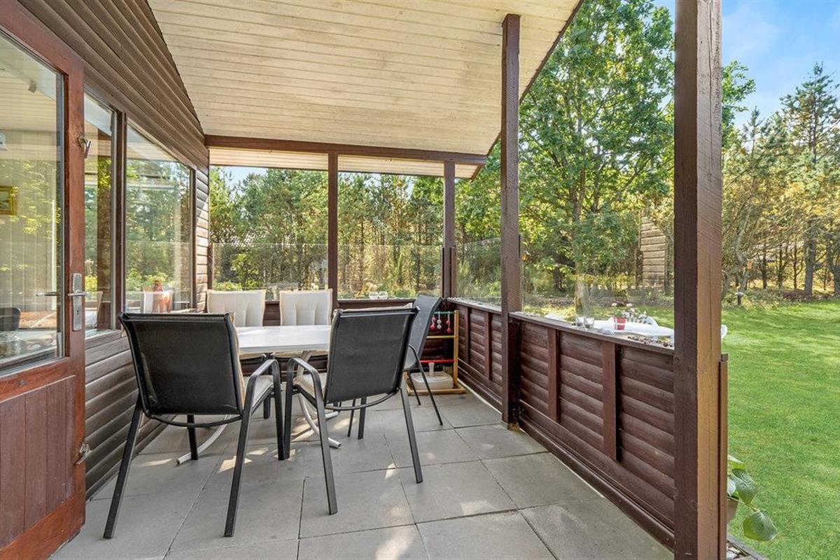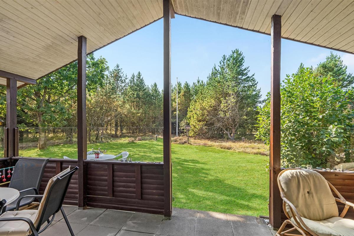 Vanuit de woonkamer heb je toegang tot een overdekt terras op het westen en het ruime, beschutte perceel. Geniet van een kopje koffie en los een spannende kruiswoordpuzzel op terwijl de kinderen voetballen of genieten van andere activiteiten in de tuin.