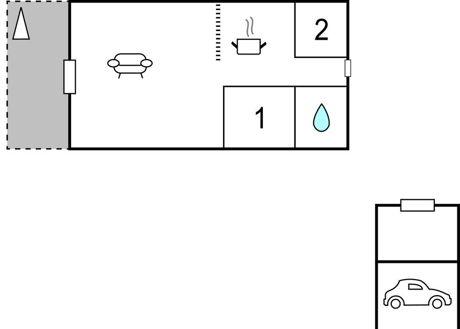 Slaapkamer 12m2 (nr. 1) - 2 Slaapplaatsen. (2-persoonsbed(den)).