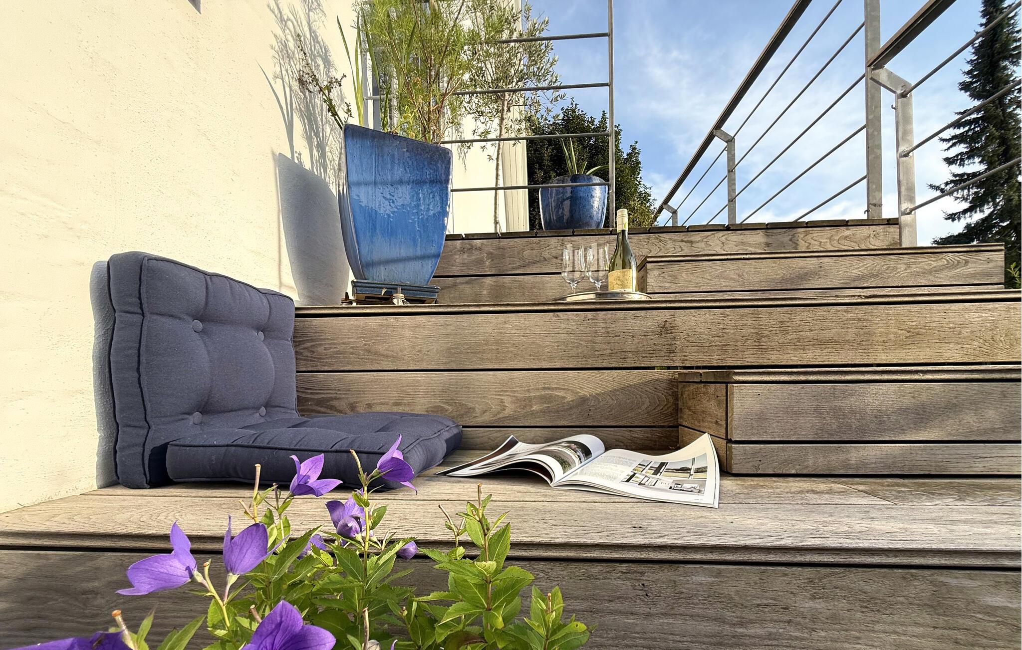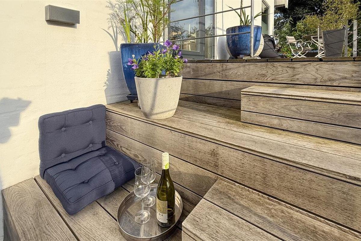 Stap bij de eerste zonnestraal het terras op en geniet niet alleen van het uitzicht op het water, maar ook van de rust van de natuur. Ontbijt hier bij warm weer of zoek een plekje in de zon om te lezen. s Avonds nodigt het terras je uit om naar de kleuren van de zonsondergang te kijken.