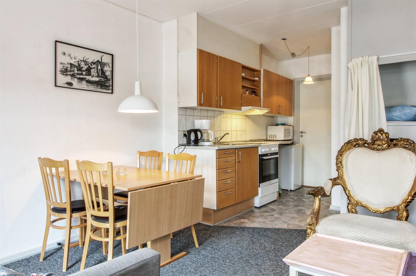 De keuken is uitgerust met koelkast Er is 4 elektrische kookplaten, bakoven, heteluchtoven.