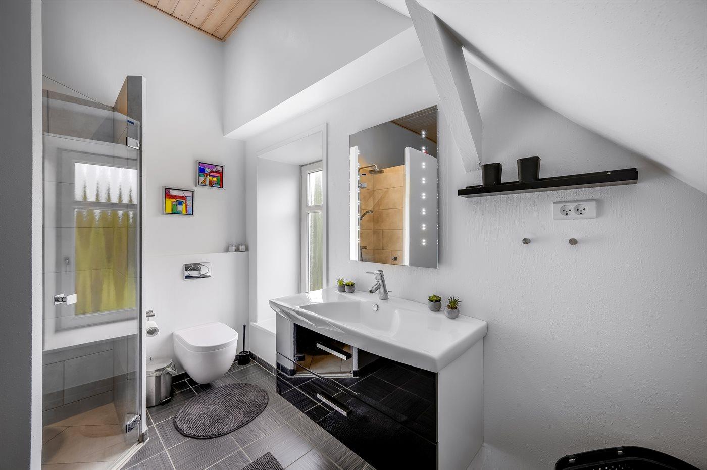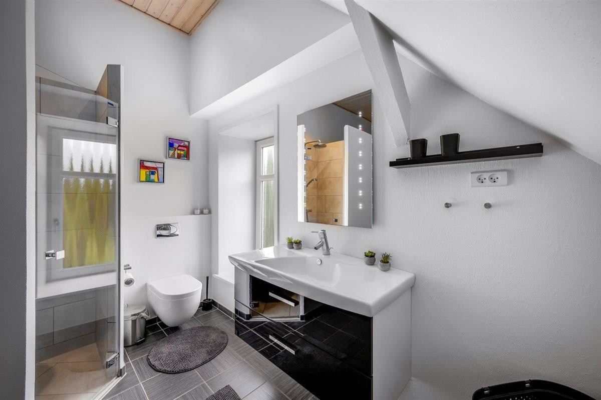 Er is 2 badkamers met douchehok en 3 toiletten, waarvan 1 gastentoilet. Er is vloerverwarming in 2 van de badkamers. Er is vloerverwarming in het gastentoilet.. Badkuip.