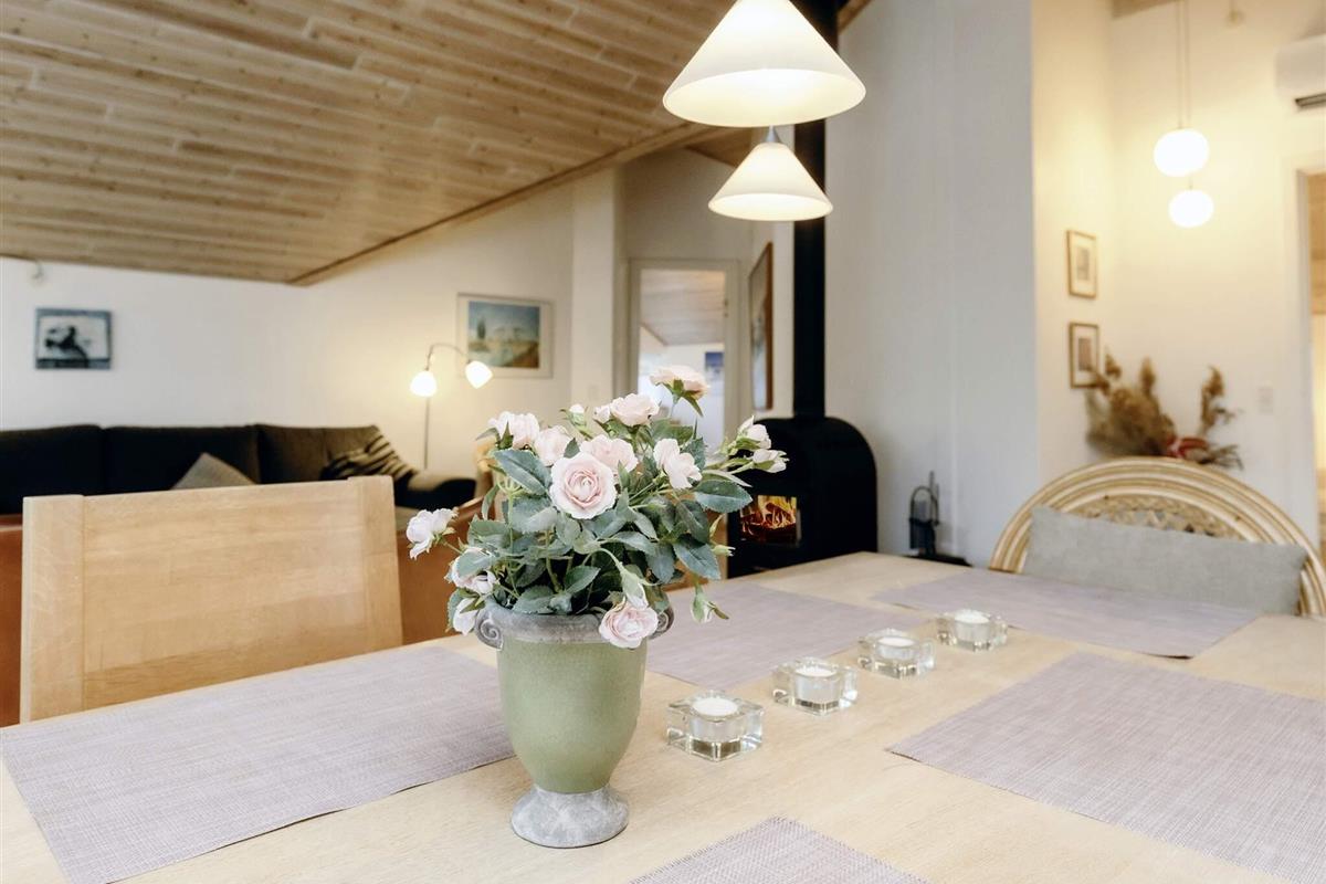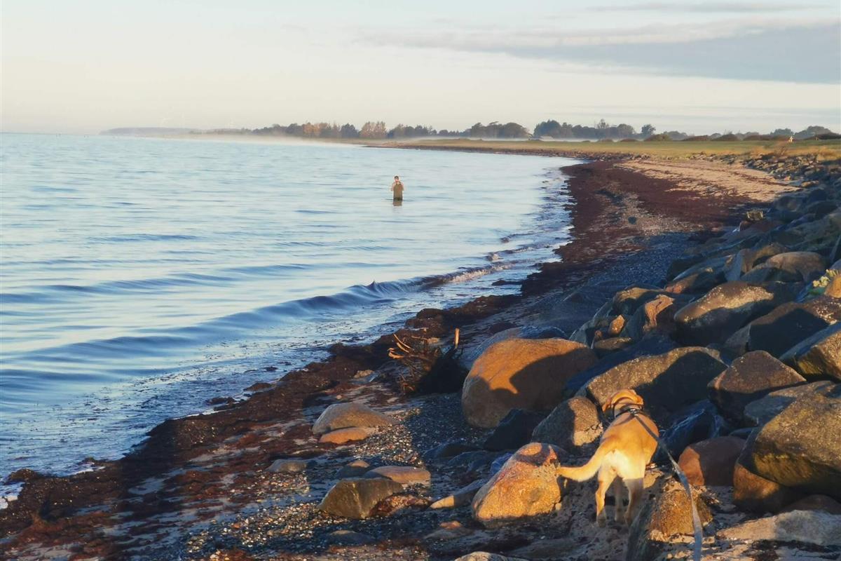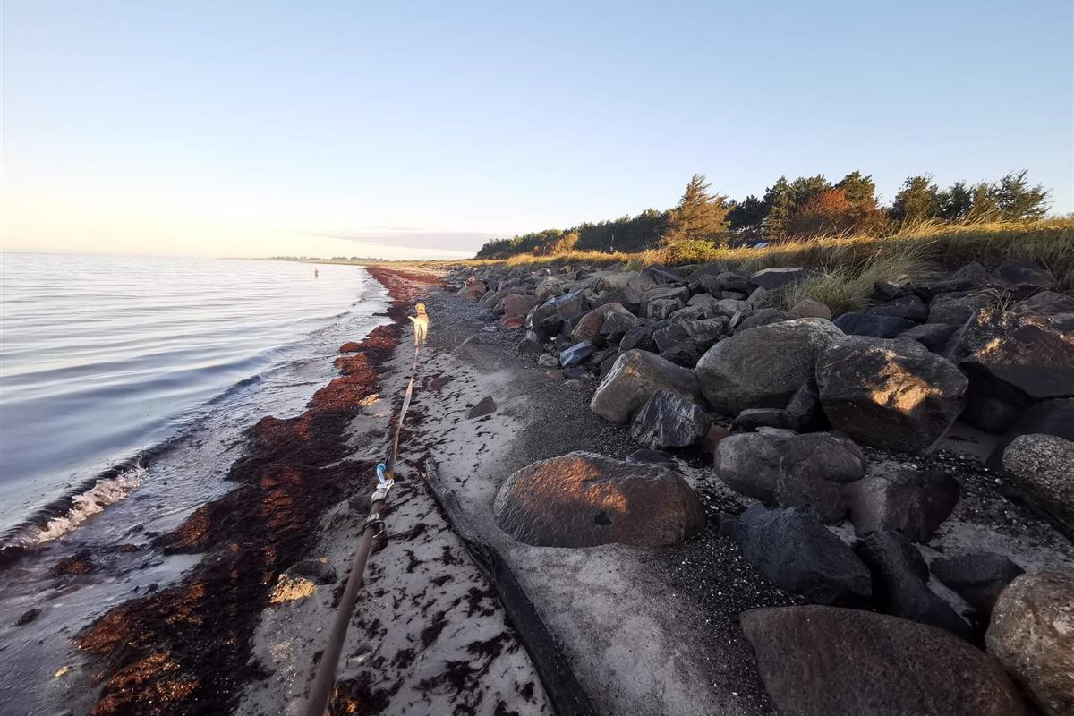 Nur 300 m vom nächsten Sandstrand entfernt findet man dieses ansprechende Ferienhaus. Vom Wohnraum blickt man in den Garten, in dem es eine Feuerstelle gibt und eine Schaukel für die jüngsten Gäste aufgestellt wurde.