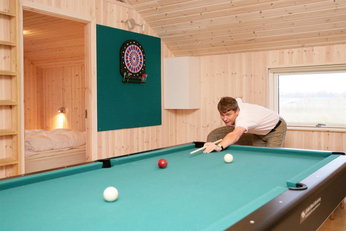 Hier können Sie sich nach einem aktiven Tag mit vielen Erlebnissen in dem Whirlpool mit Platz für 6-8 Personen oder in der Sauna aufwärmen und herrlich entspannen. Zu dem Haus gehört auch ein großer Aktivitätsraum, in dem es ausreichend Möglichkeiten gibt, mit den Kindern ein Spiel, Billard, Tischtennis oder Dart zu spielen. Auch auf dem Grundstück wurde an Kinder gedacht und es wurde eine Spielecke sowie Schaukeln und ein Sandkasten errichtet. An dem Haus befindet sich eine schöne, große Terrasse, die zu gemütlichem Beisammensein, zum Sonnen oder zu geselligen Grillabenden mit Freunden oder Familie einlädt.