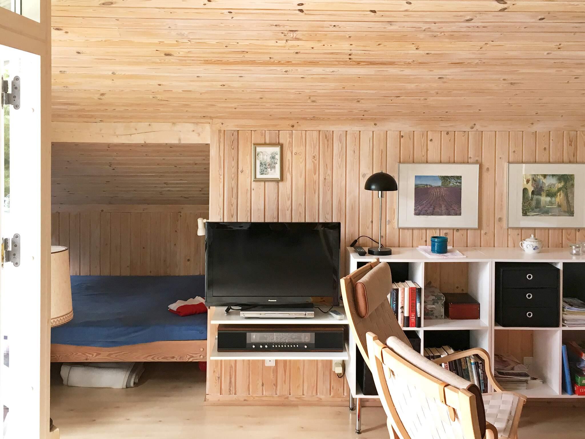 Das gemütliche Wohnzimmer verfügt über eine Nische, die als zusätzlicher Schlafbereich genutzt werden kann und flexible Schlafmöglichkeiten für Familien bietet. Die voll ausgestattete Küche und der einladende Essbereich ermöglichen die Zubereitung von Mahlzeiten und das gemütliche Beisammensein nach einem Tag voller Aktivitäten im Freien. Große Fenster sorgen für ein helles und luftiges Ambiente, während der Wohnbereich abends zum gemütlichen Entspannen einlädt.