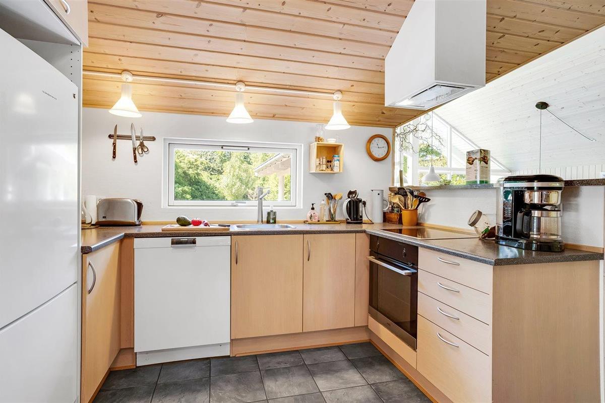 De keuken is uitgerust met koelkast Er is 4 inductiekookplaten, heteluchtoven en vaatwasser.