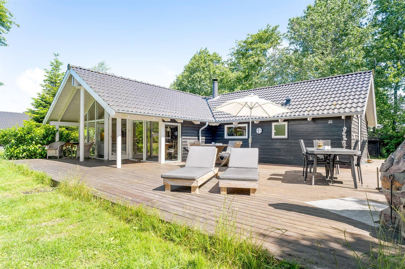 De vakantiewoning is gelegen op een 1037 m² groot aangelegde tuin. Afstand tot de zee 600 m. Dichtstbijzijnde winkel 5000 m. Bij de vakantiewoning hoort terras. Daarnaast is er een overdekt terras. Schommel. Glijbaan. Barbecue. Het huis heeft een stopcontact voor het opladen van een elektrische auto. Parkeerplaats bij het huis.