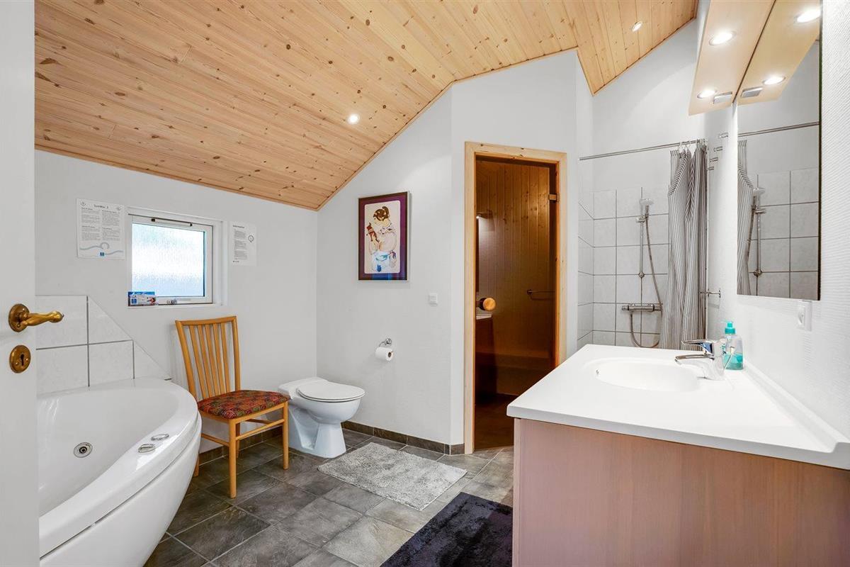 Er is 2 badkamers met douchehok en 2 toiletten. Er is vloerverwarming in 2 van de badkamers. De sauna biedt de gelegenheid tot ontspanning.