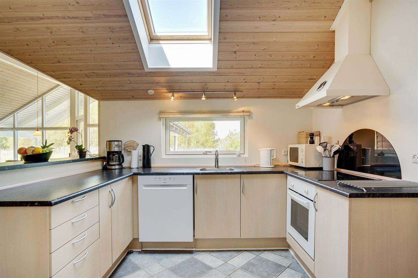 De keuken is uitgerust met koelkast Er zijn 4 keramische kookplaten, heteluchtoven, magnetron en vaatwasser.