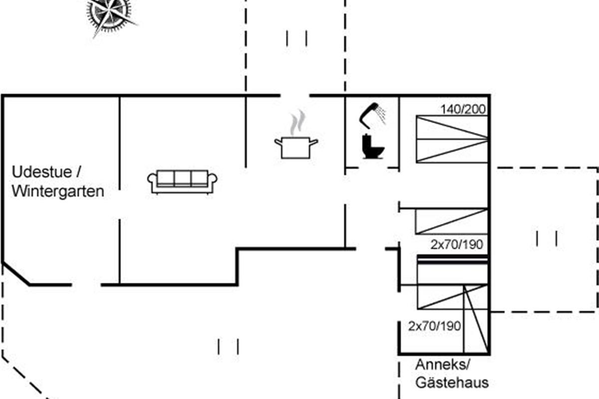 De vakantiewoning is gelegen op een 1116 m² groot aangelegde tuin. Afstand tot de zee 180 m. Er is een zwemsteiger in de buurt. Dichtstbijzijnde winkel 4000 m. Bij de vakantiewoning hoort 60 m² terras. Tevens heeft u de beschikking over een serre (20 m2). Gereedschapsruimte. Schommel. Zandbak. Speelhuisje. Glijbaan. Voetbaldoel.Vuurplaats. Buitendouche. Parkeerplaats bij het huis.