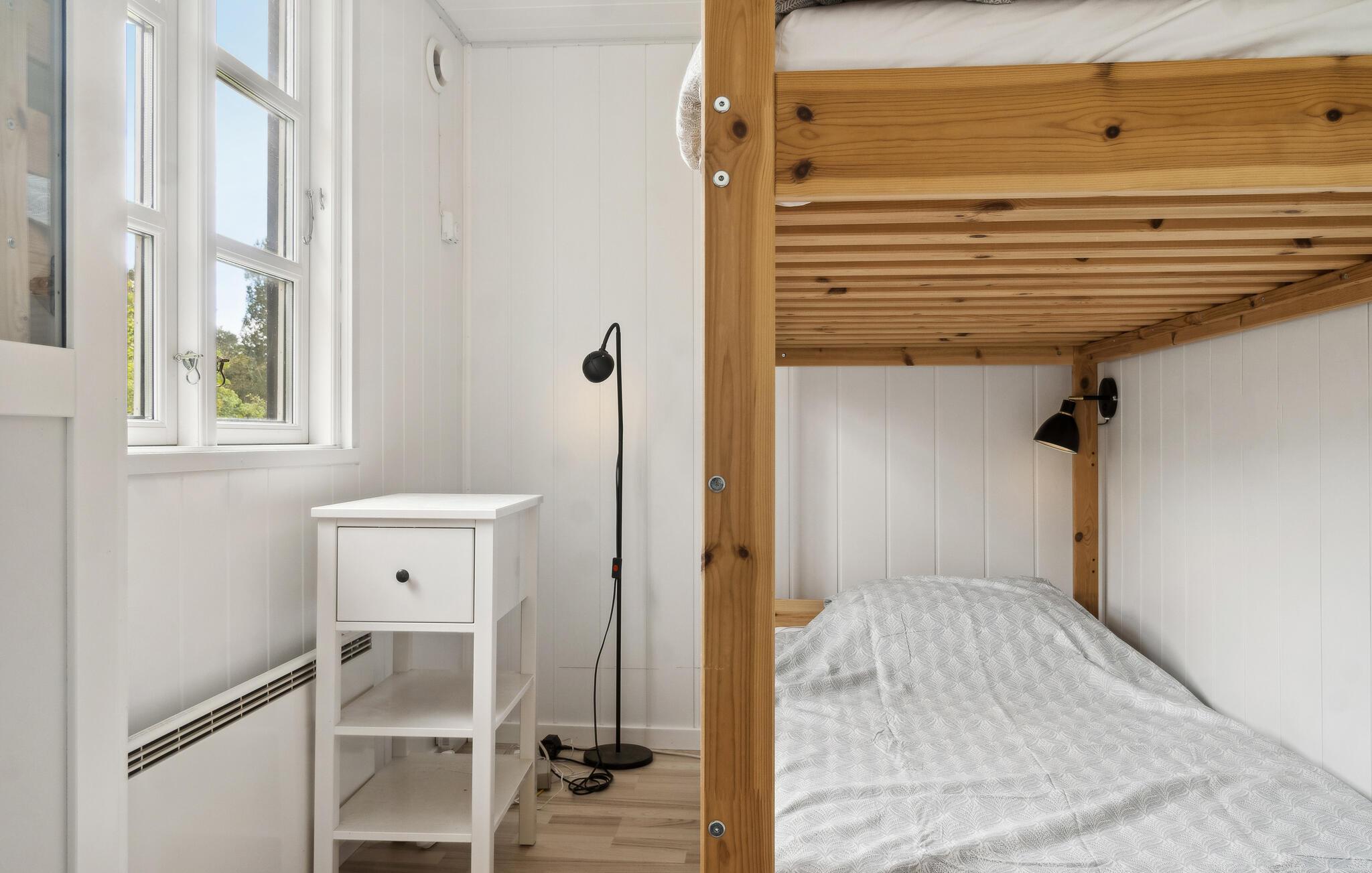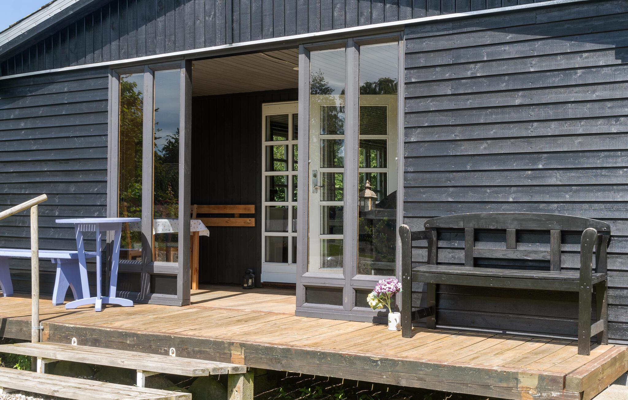 Dankzij de nabijheid van de veerhaven in Rødby is je vakantiehuis gemakkelijk en snel bereikbaar. Het interieur wordt gekenmerkt door een aantrekkelijk houten ontwerp, donker aan de buitenkant en licht aan de binnenkant, wat een uitnodigende sfeer creëert. Hier kun je ontspannen dagen doorbrengen, weg van het alledaagse leven. Je kunt samen heerlijke maaltijden bereiden in de moderne keuken en deze vervolgens gezellig nuttigen bij de houtkachel. De tuin biedt tal van mogelijkheden voor activiteiten. Speel hier kubb of badminton met je kinderen.