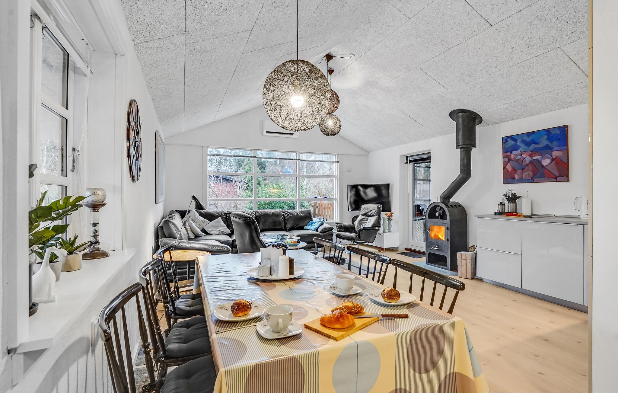 Het zwembadgedeelte van het huis is erg mooi en bevat ook een grote sauna en een cafétafel met stoelen waar je kunt zitten en kletsen en naar de badgasten kunt kijken. Breng samen tijd door in de grote, goed uitgeruste keuken, die in open verbinding staat met het woongedeelte. Kijk ernaar uit om een leuke en actieve dag af te sluiten met een diner aan de eettafel voordat je neerstrijkt op de bank om te genieten van de warmte van de houtkachel of om samen een goede film te kijken.