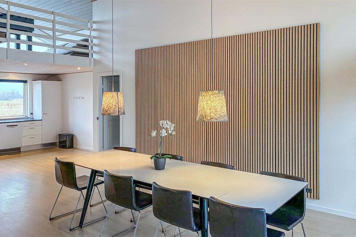Dit huis verwelkomt je met een lichte en vriendelijke sfeer. Grote ramen laten veel daglicht binnen, terwijl je kunt genieten van een prachtig uitzicht op het uitgestrekte landschap. Leun achterover en ontspan op de comfortabele banken, breng samen een filmavond door of speel een potje tafelvoetbal met de kinderen. Probeer nieuwe recepten uit in de moderne keuken en serveer ze met een glas wijn.