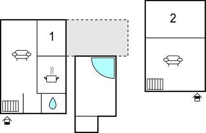 Woonkamer met open keuken - 2 Slaapplaatsen. (Opklapbed(den) of matras(sen)).