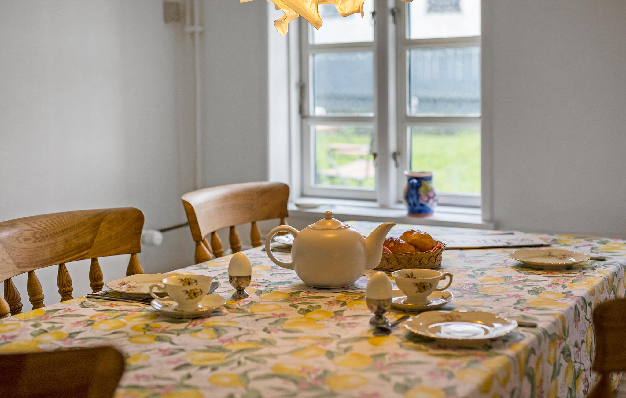 In het kleine dorpje Bregninge heet deze lichte en vriendelijke accommodatie met twee verdiepingen je welkom. De aantrekkelijke hoeveelheid ruimte is ideaal voor een gezin dat graag tijd met elkaar doorbrengt, maar ook een beetje privacy op prijs stelt. Begin je vakantie met een heerlijk ontbijt, dat je samen in de keuken kunt klaarmaken en aan de eettafel kunt opeten. Plan je volgende activiteiten en excursies terwijl je bezig bent en geniet, wanneer je in de zomermaanden terugkeert, 's middags van ontspannende uren in de zon in de tuin, waar je de avonden kunt afsluiten met kaarten en kletsen.