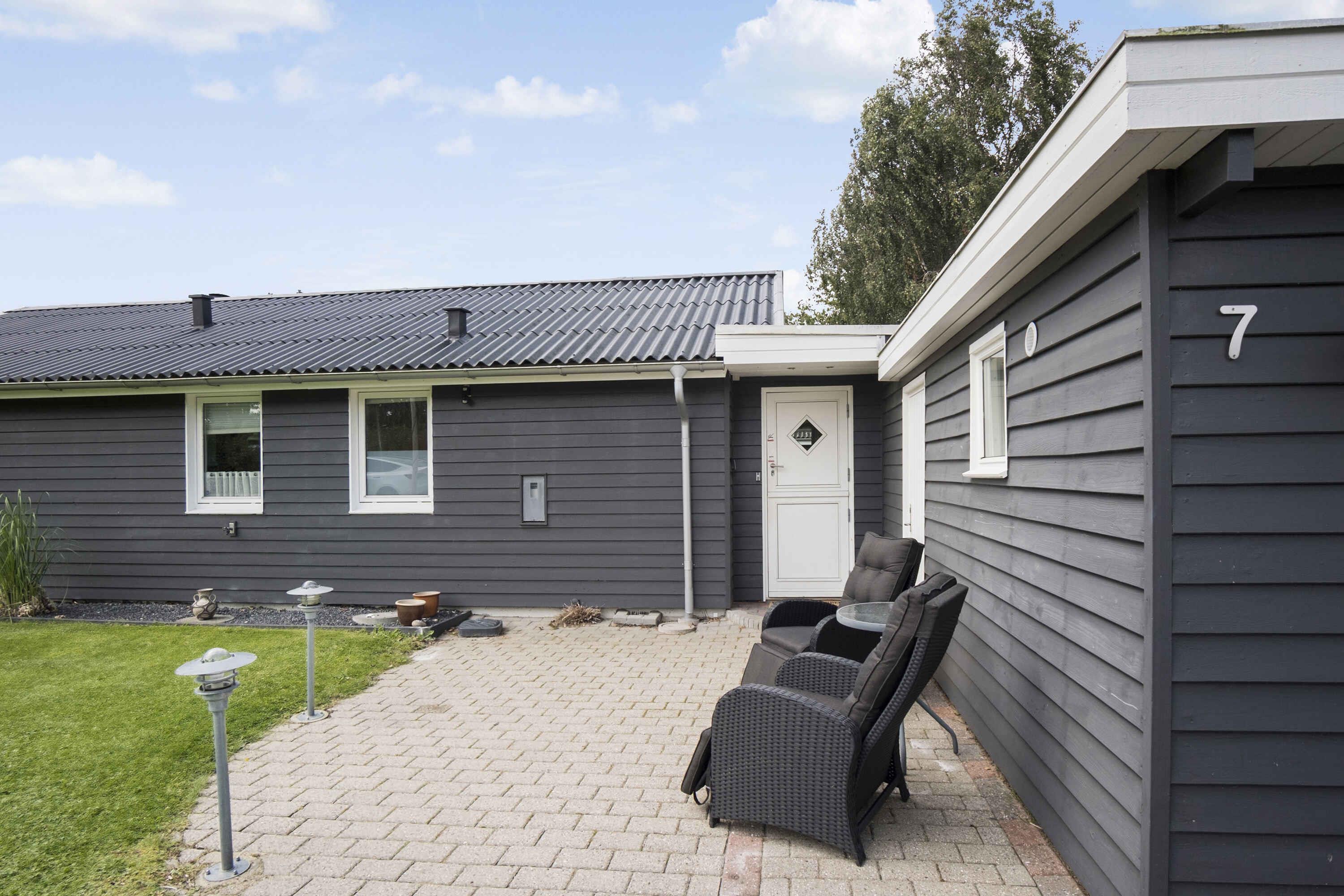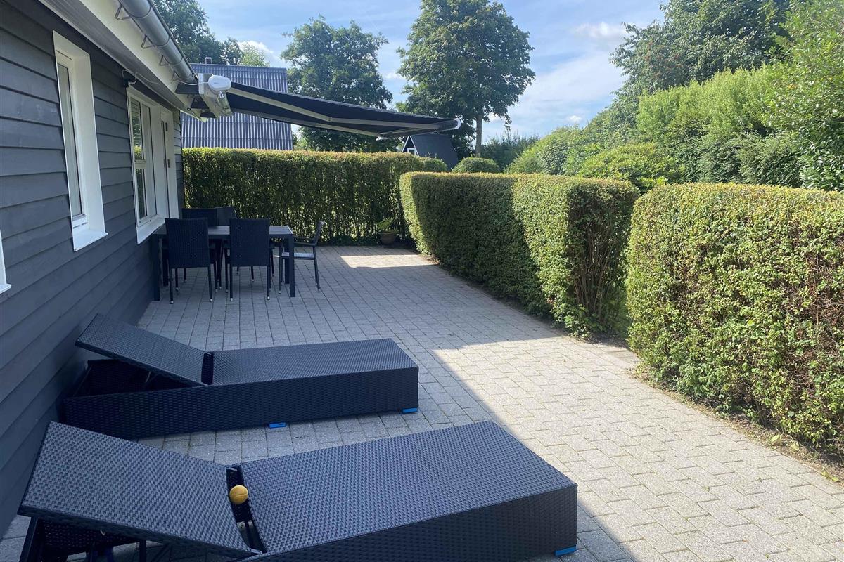 Modern vakantiehuis vlak bij het strand met zonnig terras en comfortabele inrichting.