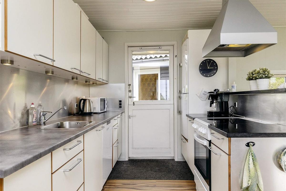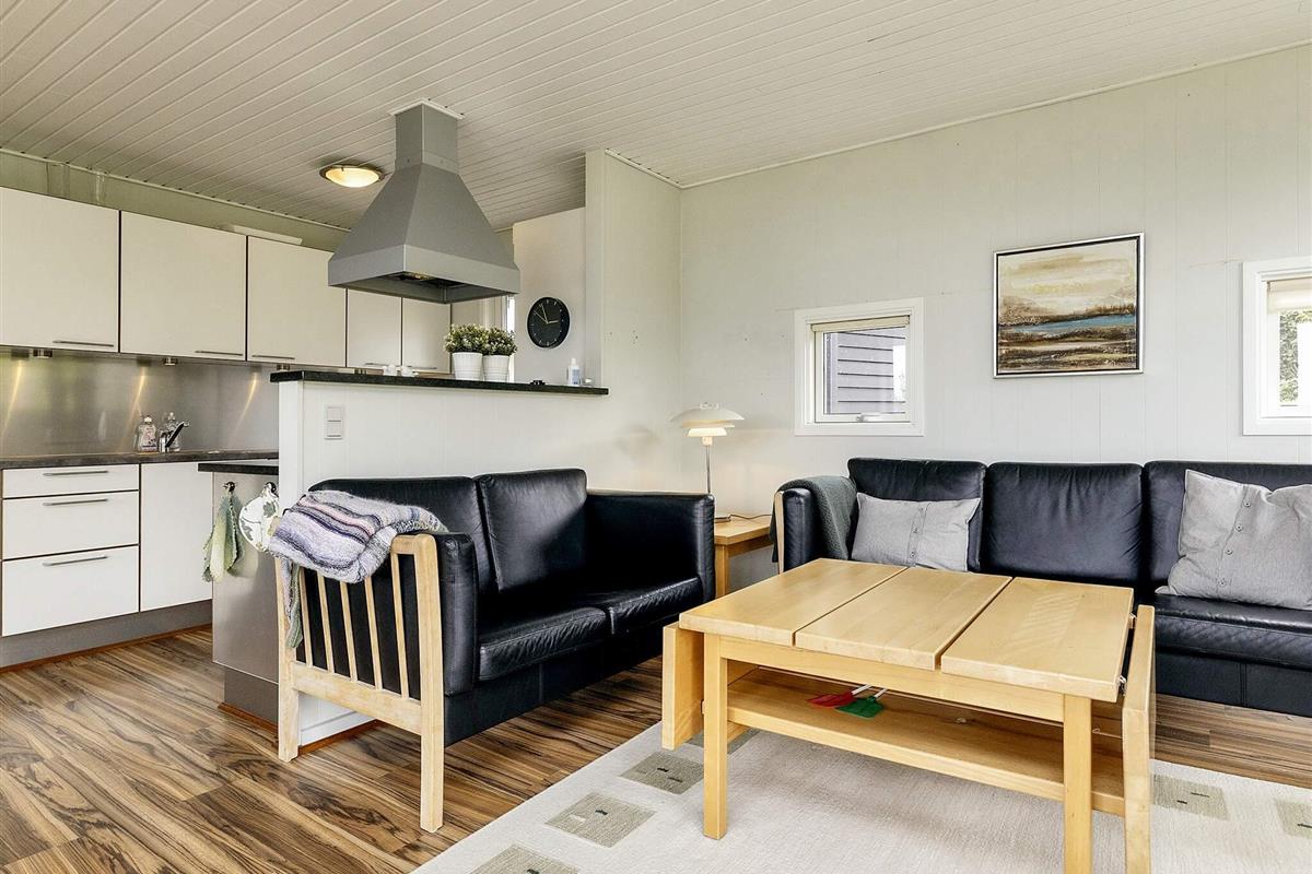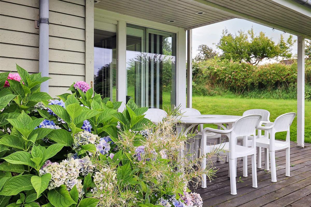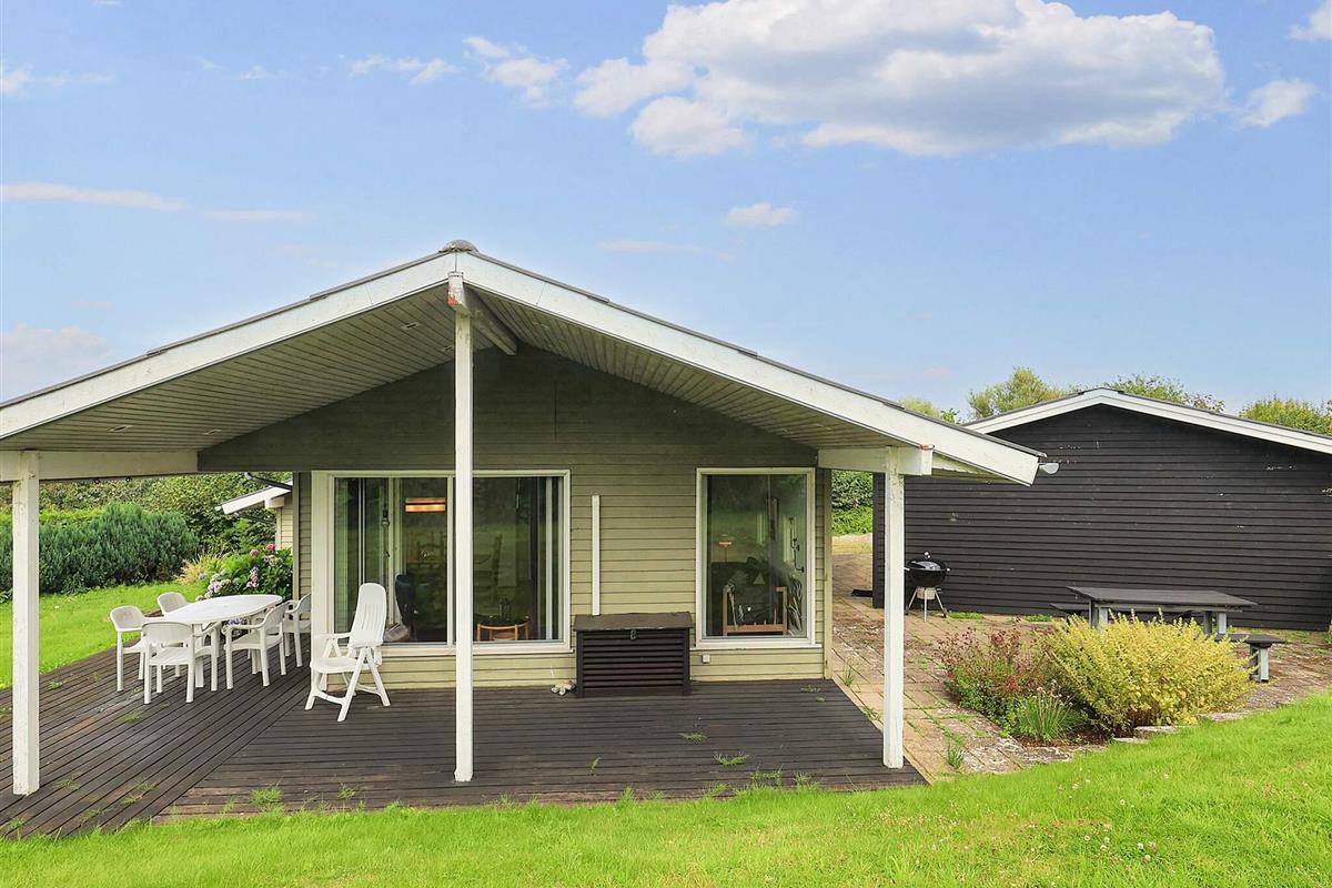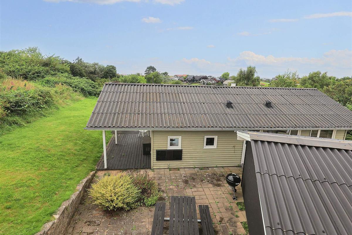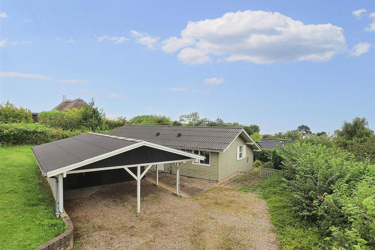 Das Ferienhaus verfügt über eine offene Küche in Verbindung mit einem Wohnzimmer, das Zugang zur Terrasse hat, von wo aus Sie Meerblick. Draußen auf der überdachten Terrasse haben Sie die Möglichkeit, unabhängig vom Wetter die schöne Umgebung und die frische Luft zu genießen. Mit einem Holzkohlegrill ergeben sich perfekte Möglichkeiten für gemütliche Grillabende und geselliges Beisammensein. Darüber hinaus ist das Ferienhaus mit einem doppelten Carport ausgestattet, der praktisches Parken und Schutz für Ihre Autos bietet.