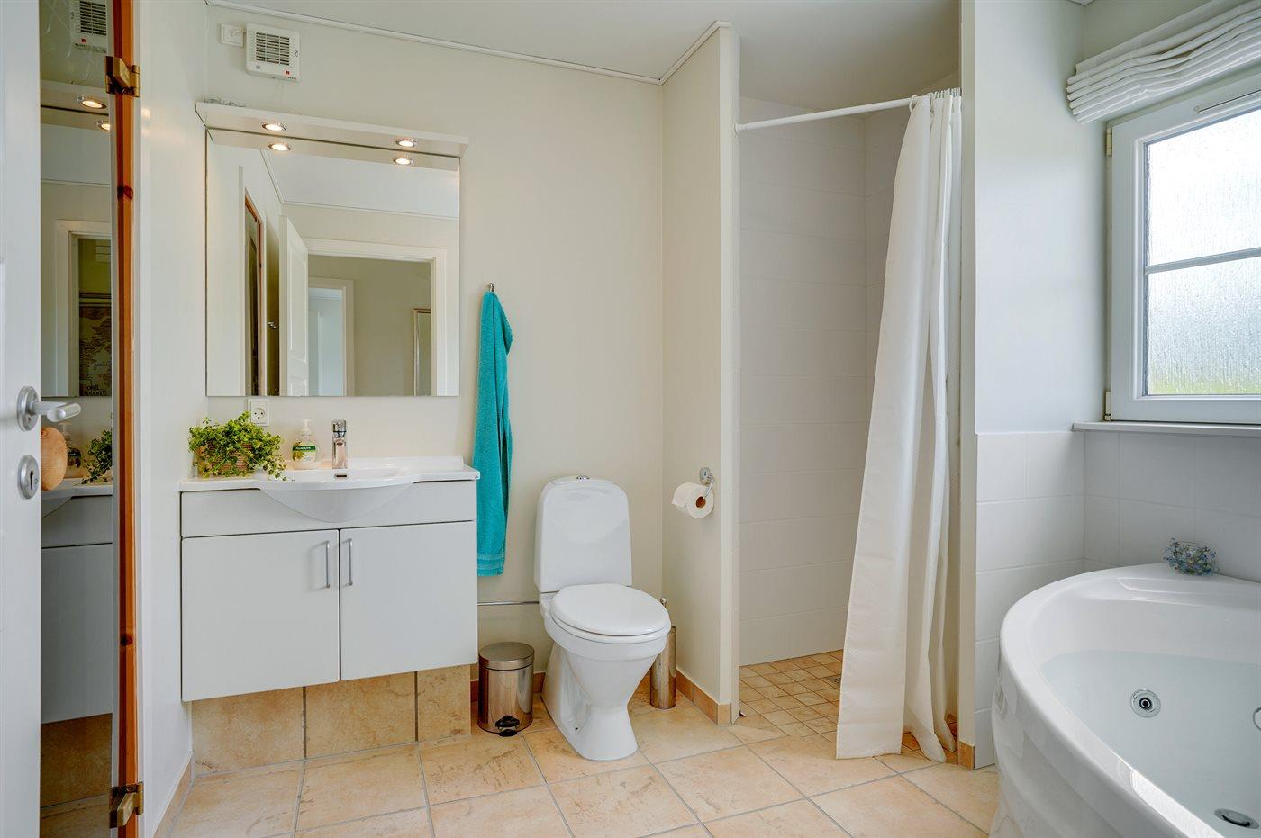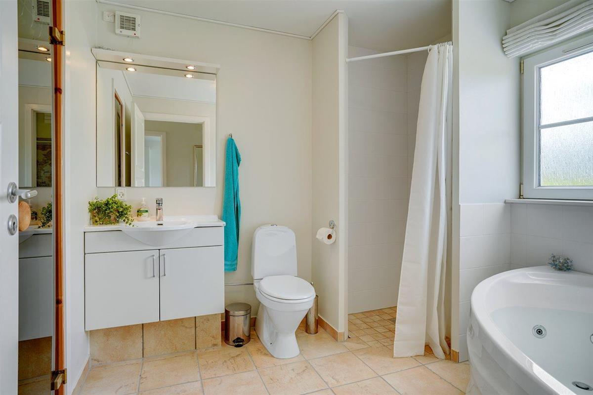 Er is 1 badkamer met douchehok en 2 toiletten, waarvan 1 gastentoilet. Er is vloerverwarming in 1 badkamer. De sauna biedt de gelegenheid tot ontspanning.