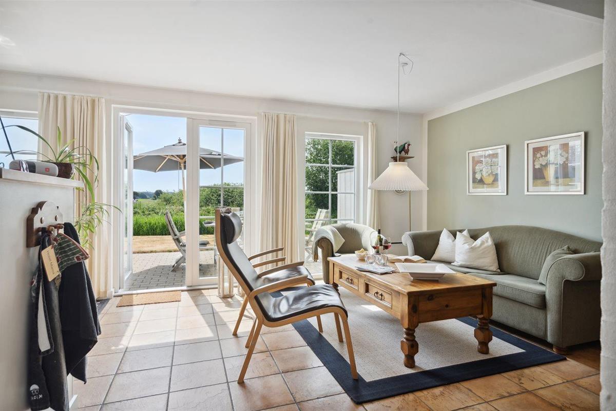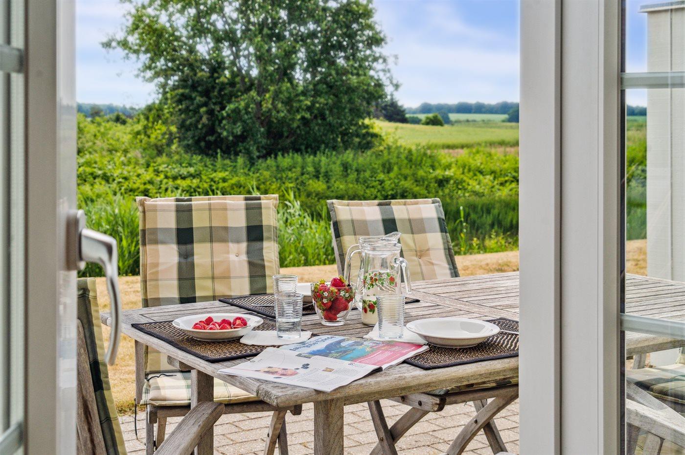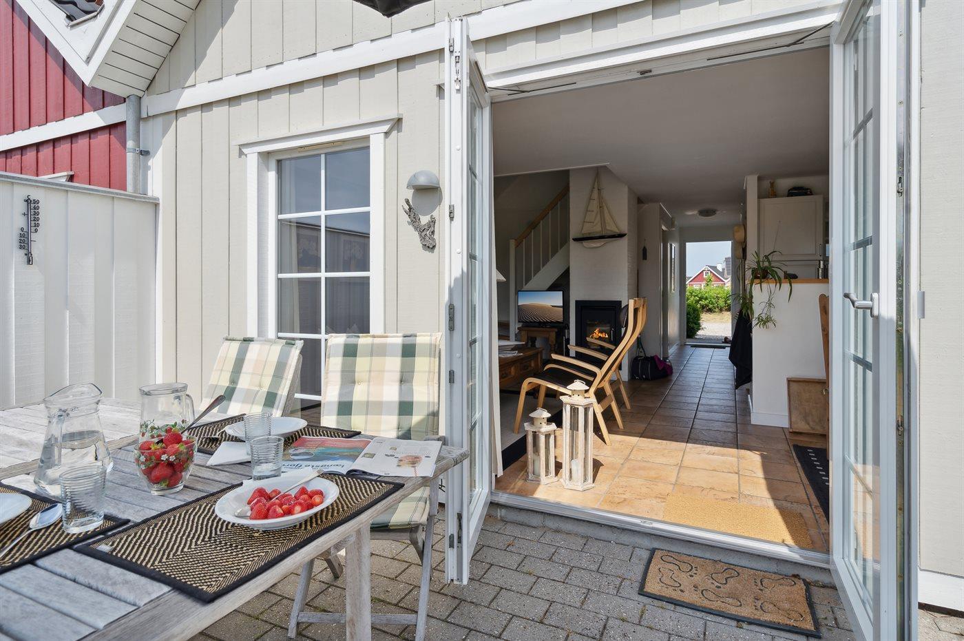 De vakantiewoning is gelegen op een 300 m² groot aangelegde tuin. Afstand tot de zee 300 m. Er is een zwemsteiger in de buurt. Dichtstbijzijnde winkel 1000 m. Bij de vakantiewoning hoort 30 m² terras. Balkon. Gereedschapsruimte. Er zijn twee barbecues beschikbaar (een met gas en een met kolen). Parkeerplaats bij het huis.