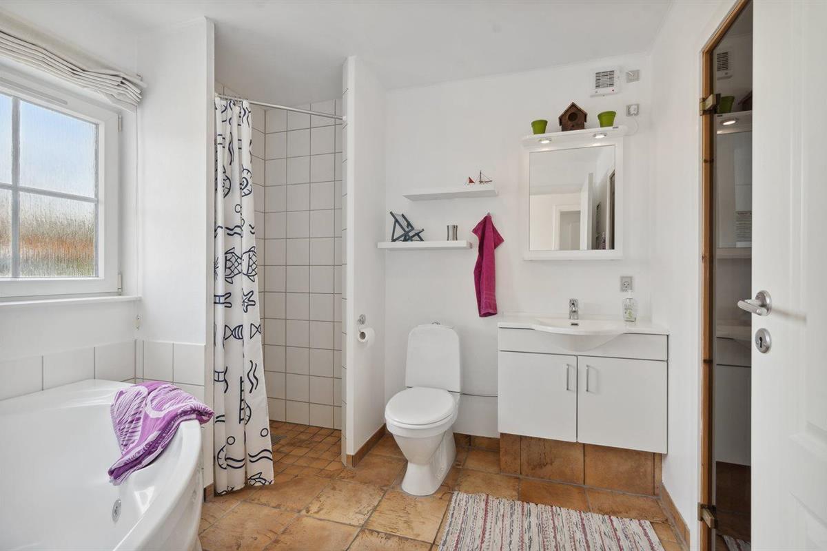 Er is 1 badkamer met douchehok en 2 toiletten, waarvan 1 gastentoilet. Er is vloerverwarming in 1 badkamer. De sauna biedt de gelegenheid tot ontspanning.