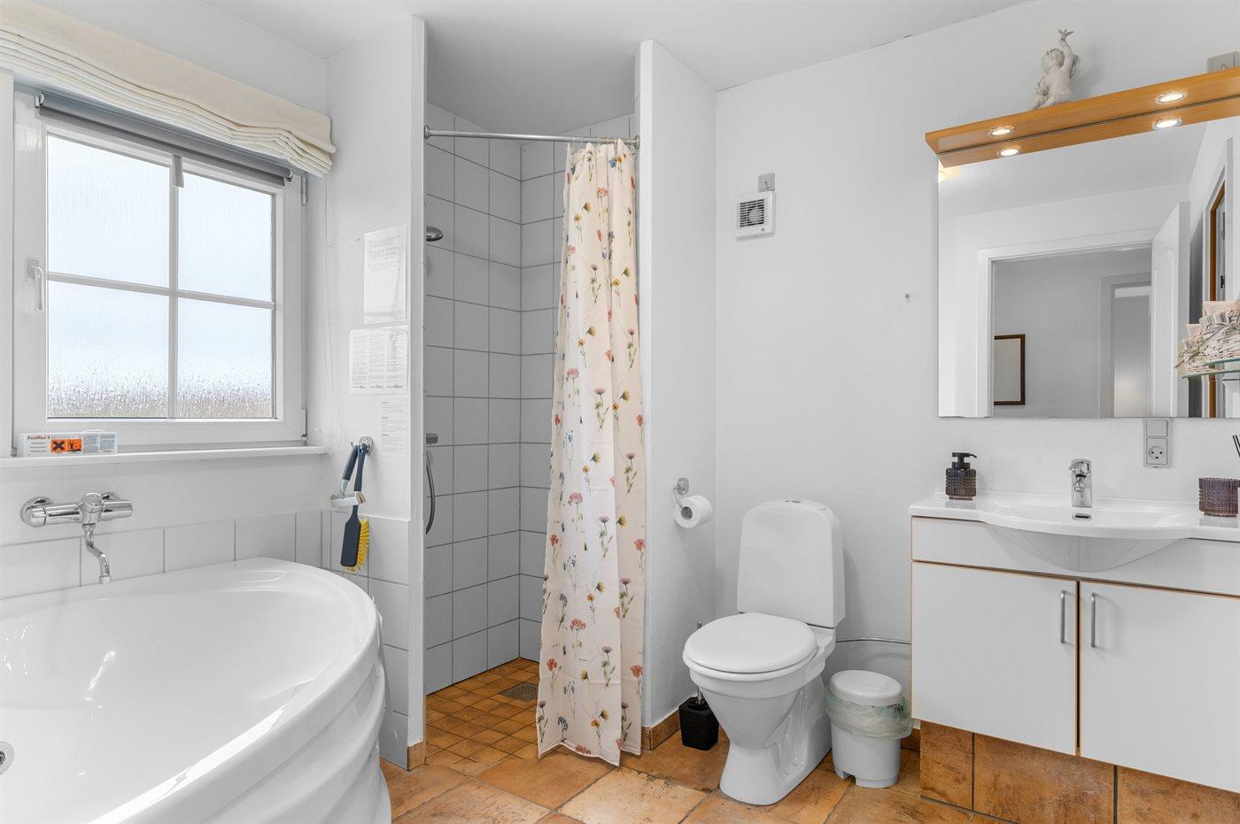 Er is 1 badkamer met douchehok en 2 toiletten, waarvan 1 gastentoilet. Er is vloerverwarming in 1 badkamer. De sauna biedt de gelegenheid tot ontspanning.