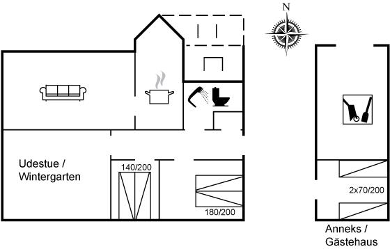 In de vakantiewoning is aanwezig televisie. 1-3 deense zenders. Draadloos internet.