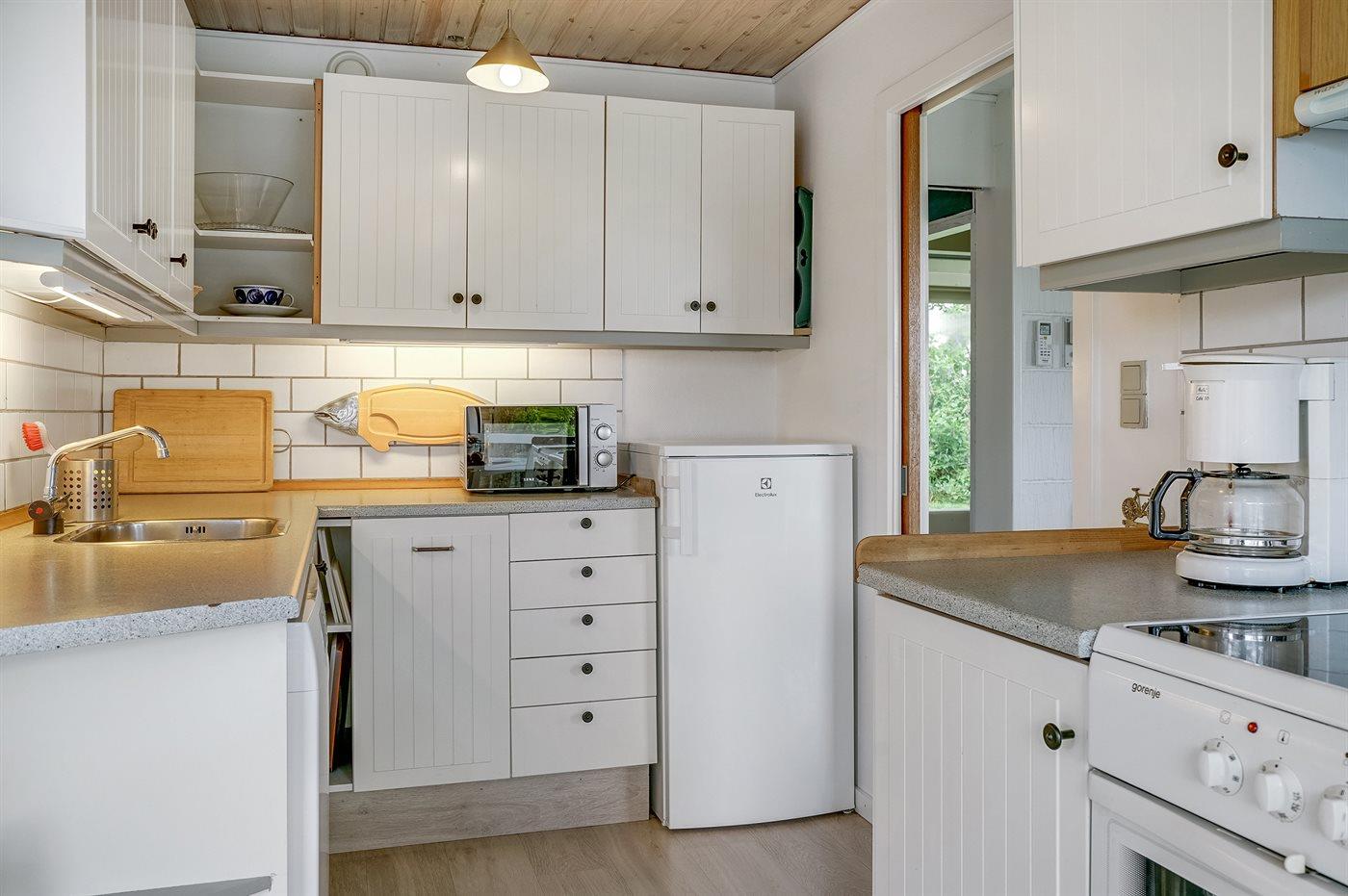 De keuken is uitgerust met koelkast Er zijn 4 keramische kookplaten, heteluchtoven, magnetron en vaatwasser.