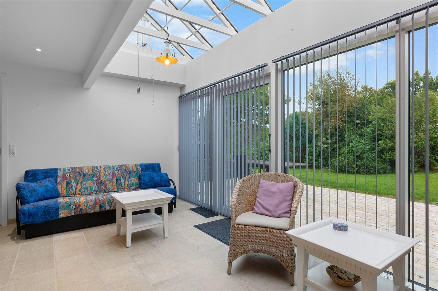 Comfortabel vakantiehuis nabij de zee met tuin, serre en moderne voorzieningen voor een ontspannen verblijf.