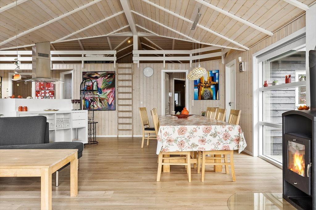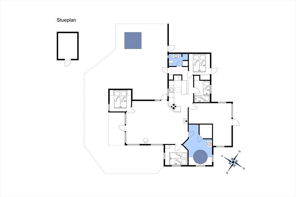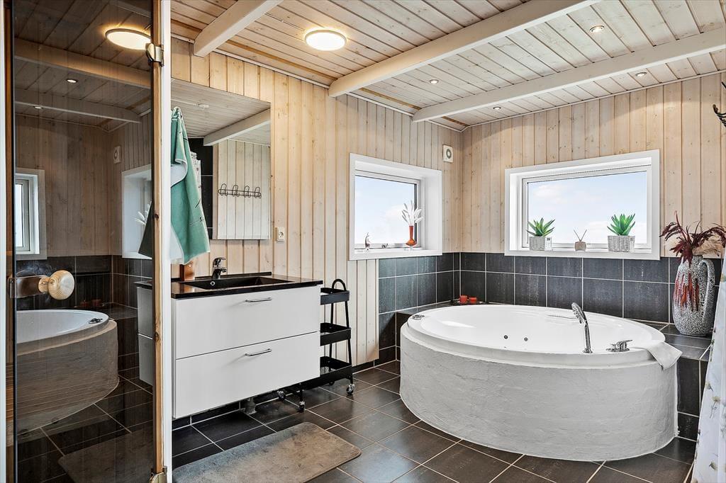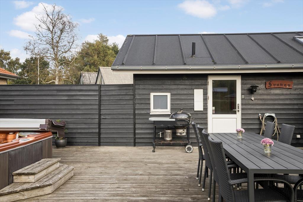 2010 Gebautes Ferienhaus mit Sauna, Whirlpool sowie Aussen-Whirlpool in Strandnähe im Ferienhausgebiet Bro Strand/Varbjerg. Das Haus verfügt über ein schönes und großes Wohnzimmer mit hoher Decke und Brennofen. Moderne, zum Wohnzimmer hin offene Küche. 4 Schlafräume und ein großer Hems mit 2 Schlafplätzen. Im Haus befinden sich 2 Badezimmer, Sauna und Whirlpool. Falls das Wetter mal nicht mitspielt, kann man sich im goßen Aktivitätsraum mit u.a. Tischtennis, Tischfußball und Nintendo die Zeit vertreiben. Fußbodenheizung im gesamten Haus. Das Haus wird mit Erdwärme beheizt, wodurch weniger Heizkosten anfallen als in vergleichbaren Ferienhäusern. Vom Wohnzimmer aus Zugang zur großen Terrasse, die das Haus umgibt. Hier kann mann im Aussen-Whirlpool total entspannen und den Urlaub geniesen. Ein kleiner Teil der Terrasse ist überdacht. Vom Haus und Grundstück aus kann man Richtung Meer gucken.
