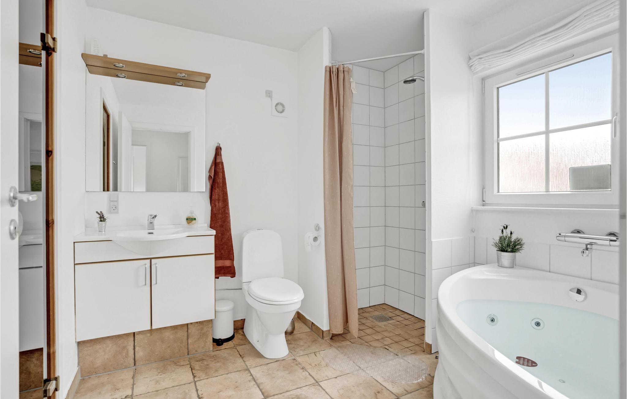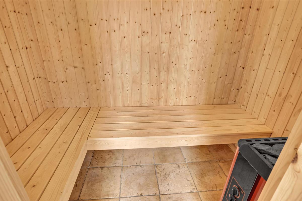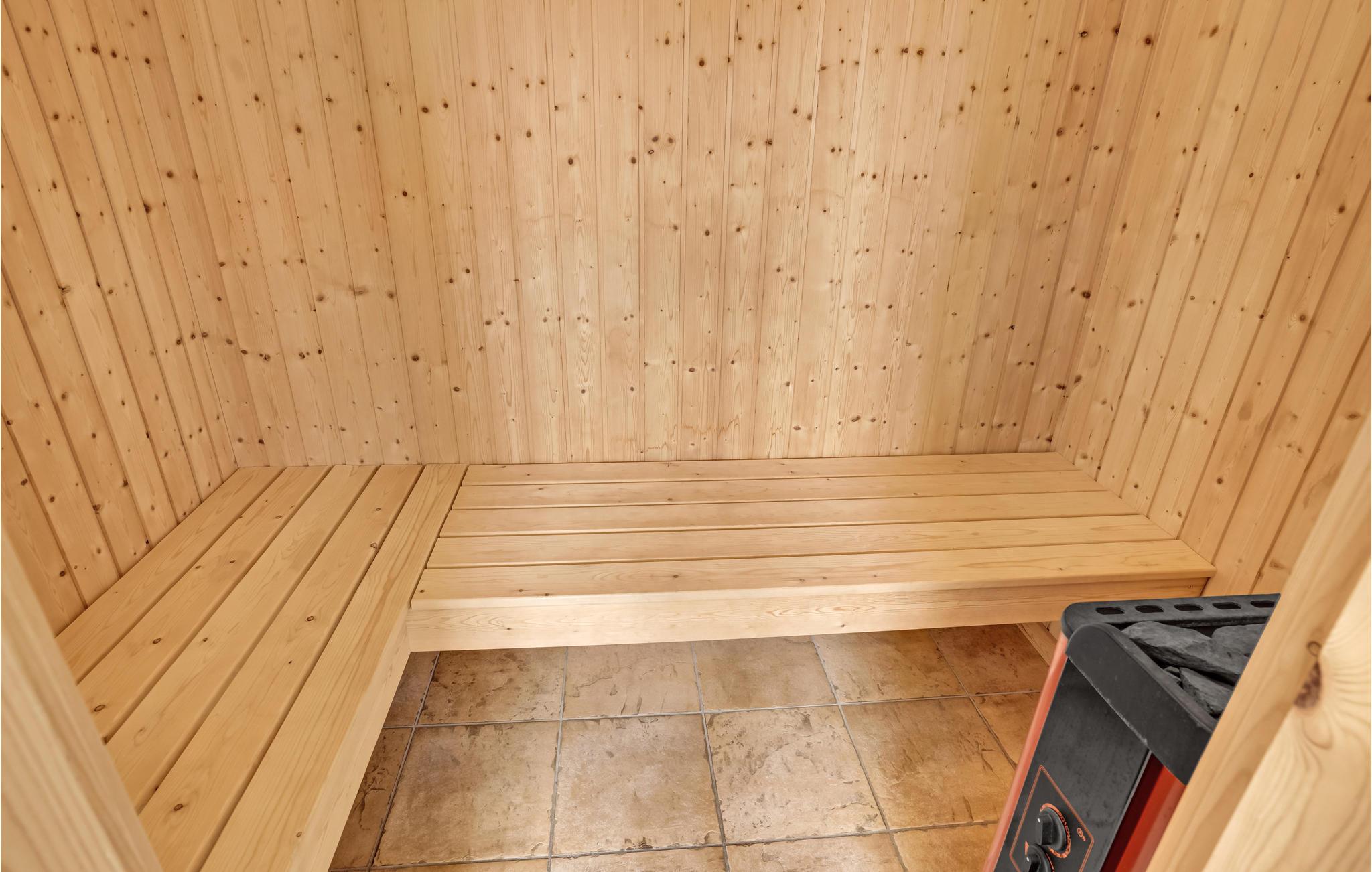 Dit vakantiehuis ligt in een prachtig vakantiehuisgebied niet ver van het strand en biedt met zijn drie slaapkamers en één badkamer ruimte voor een groter gezin. Het huis heeft ook een groot woongedeelte met een open keuken, een bank en een eethoek. Ontspan hier 's avonds voor de open haard of kook samen heerlijke maaltijden in de keuken. Na een lange vakantiedag nodigen de whirlpool en de sauna uit tot ontspannende wellnessmomenten.