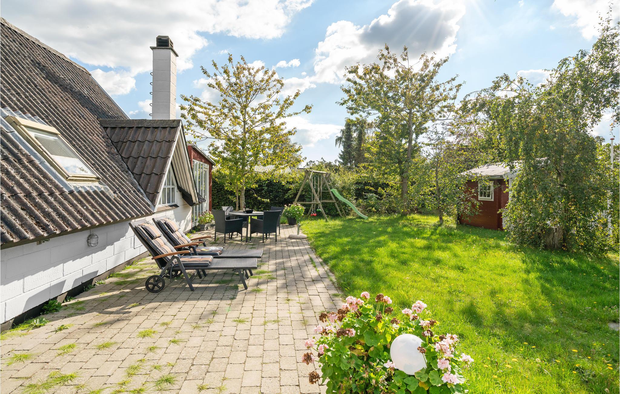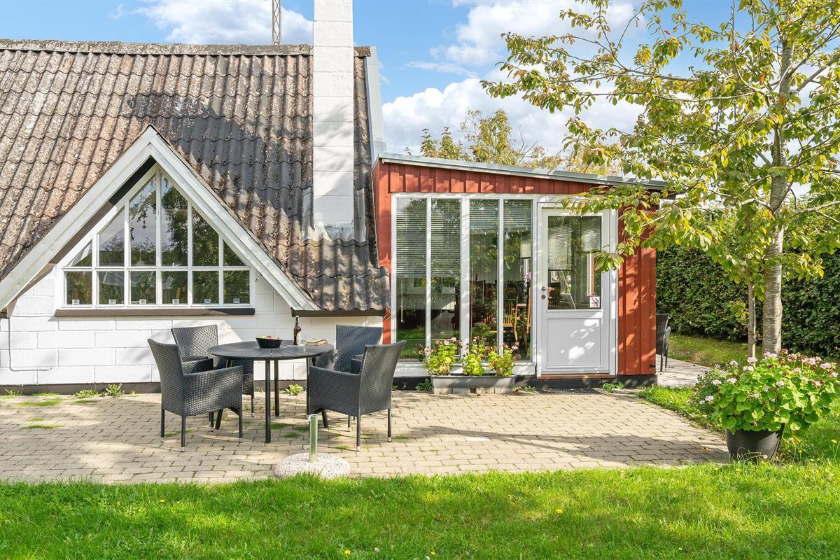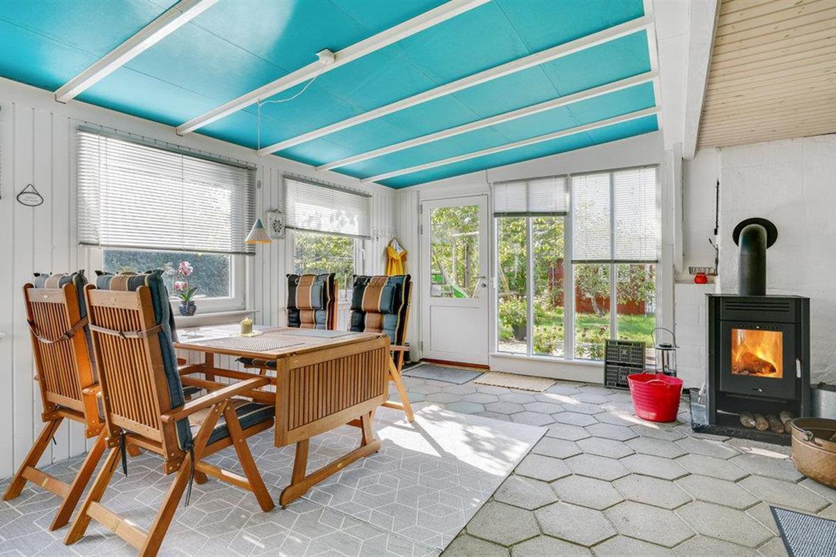 Gezellig vakantiehuis nabij Bro Strand met serre, open haard en comfortabele voorzieningen.