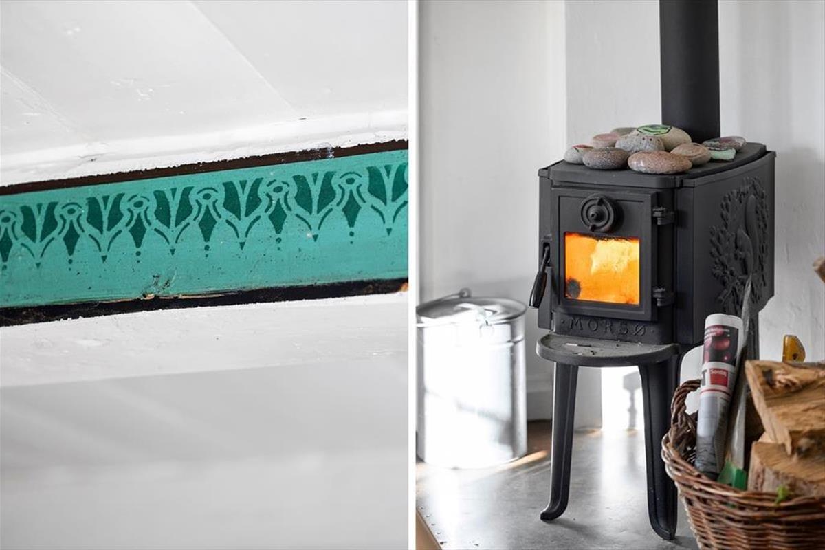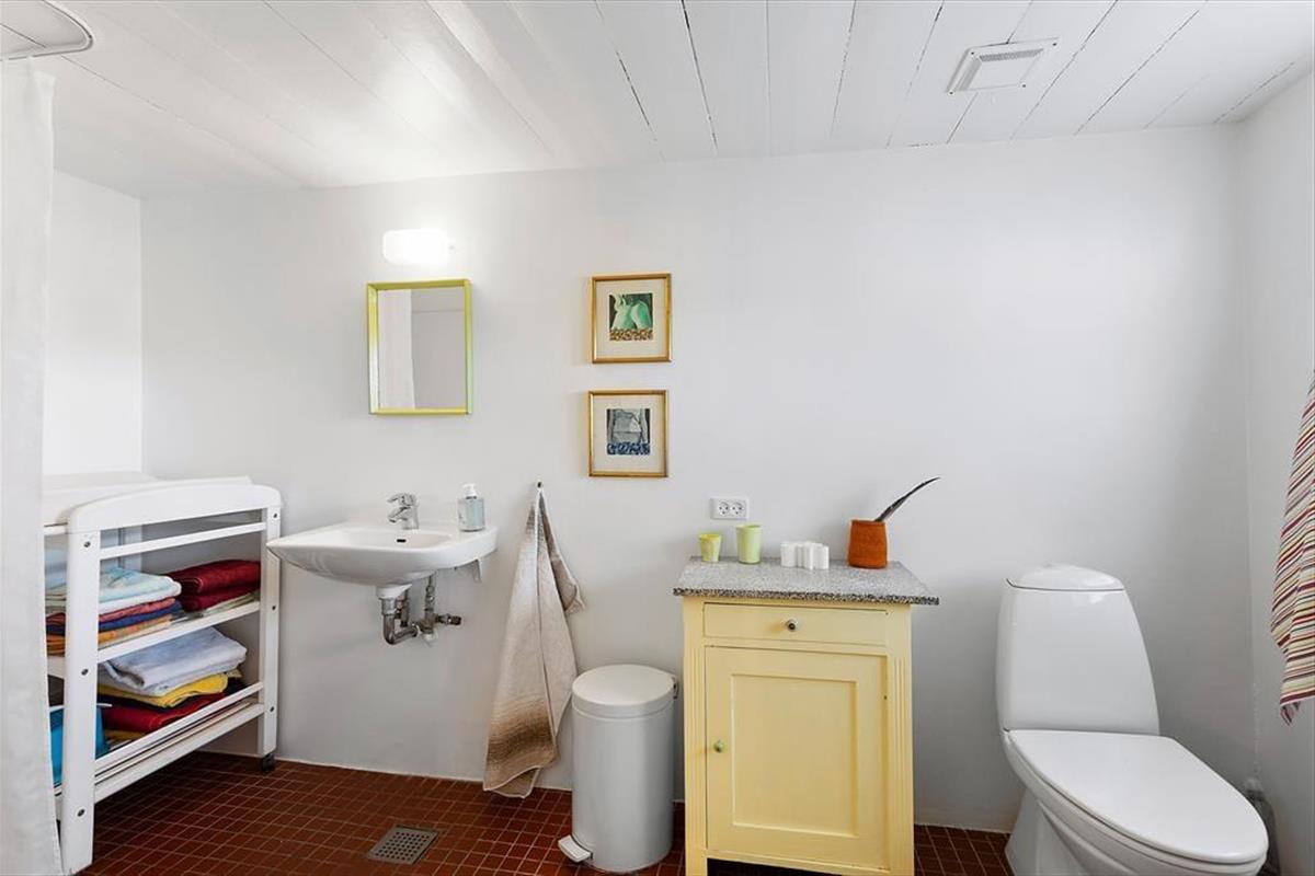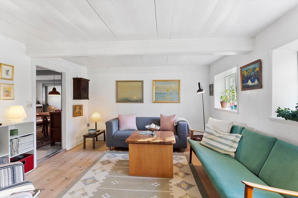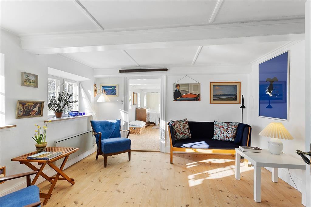 Treten Sie ein in diese charmante Landküche, wo sichtbare Balken und rustikale Details eine warme Atmosphäre schaffen. Hier gibt es viel Platz, um köstliche Mahlzeiten zuzubereiten, vielleicht mit Zutaten von den lokalen Märkten. Der Essbereich mit dem Kaminofen lädt zu langen Abendessen und gemütlichen Stunden vor dem Feuer ein, während das Fernsehzimmer der perfekte Ort zum Entspannen nach einem Tag voller Erlebnisse auf Aeroe ist.