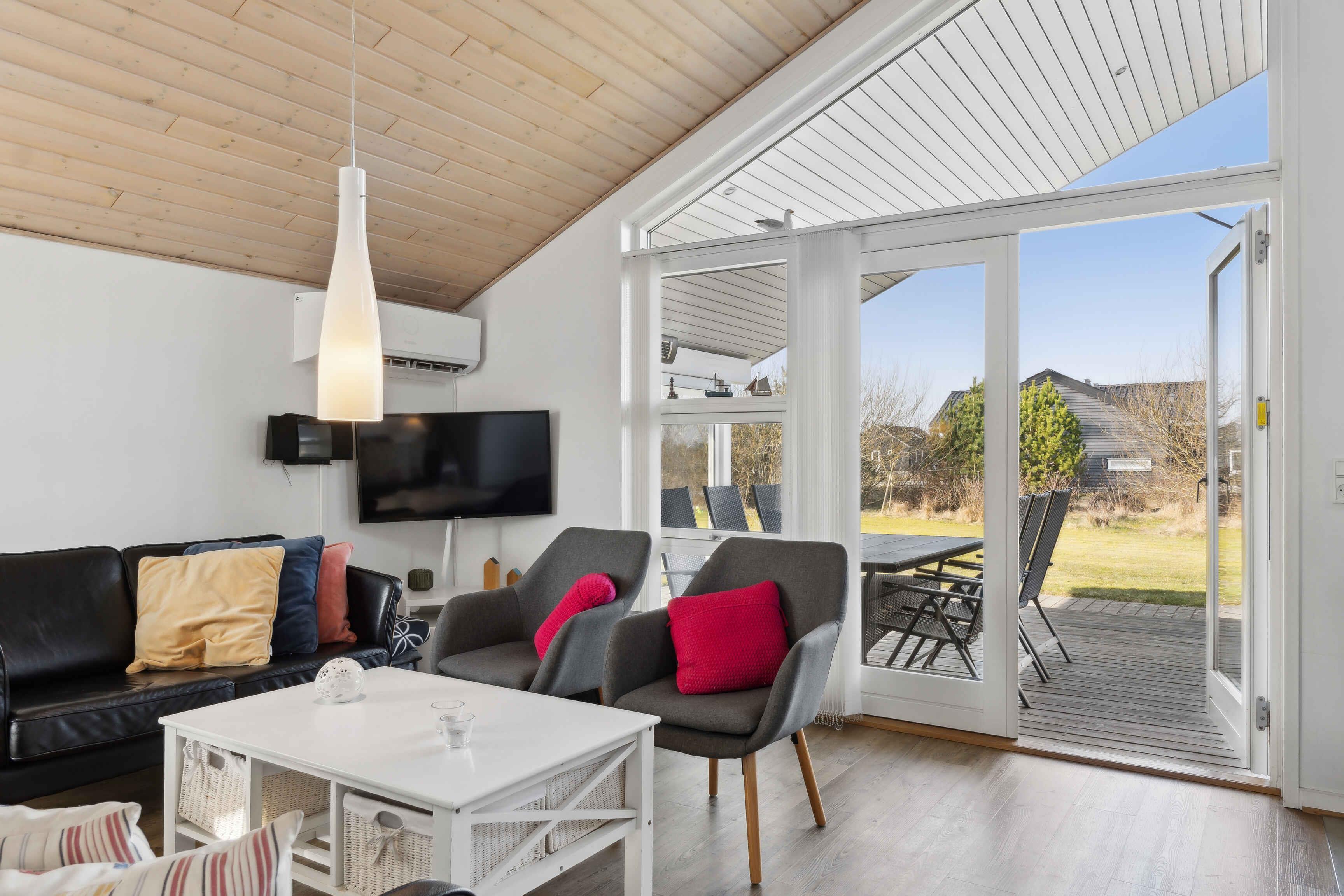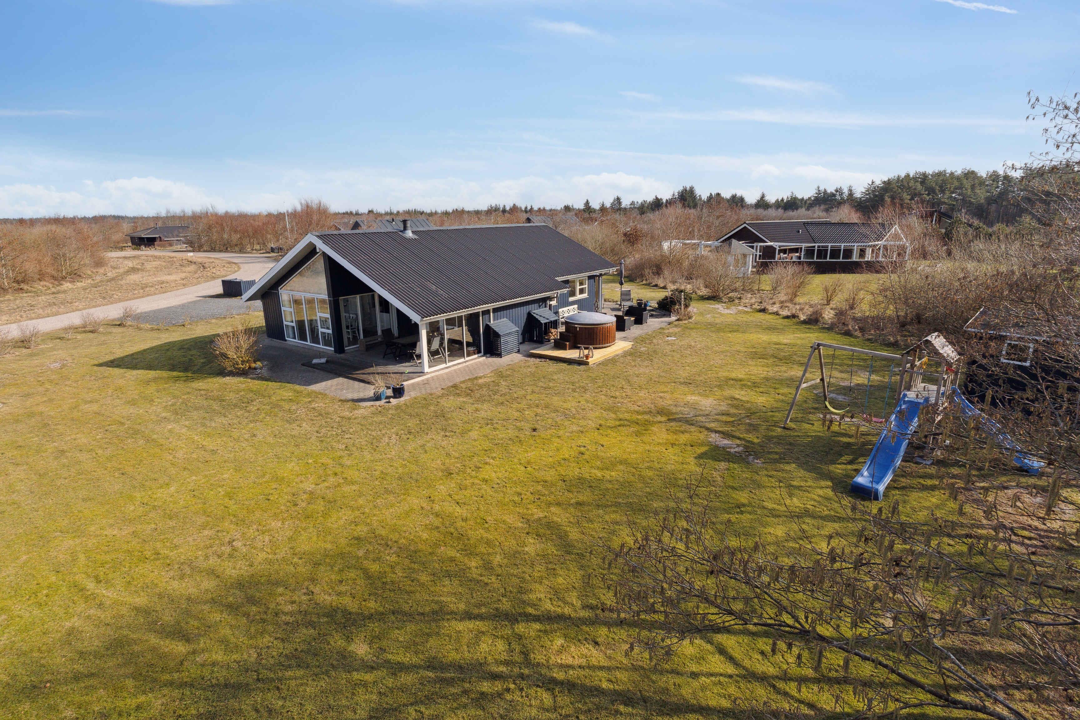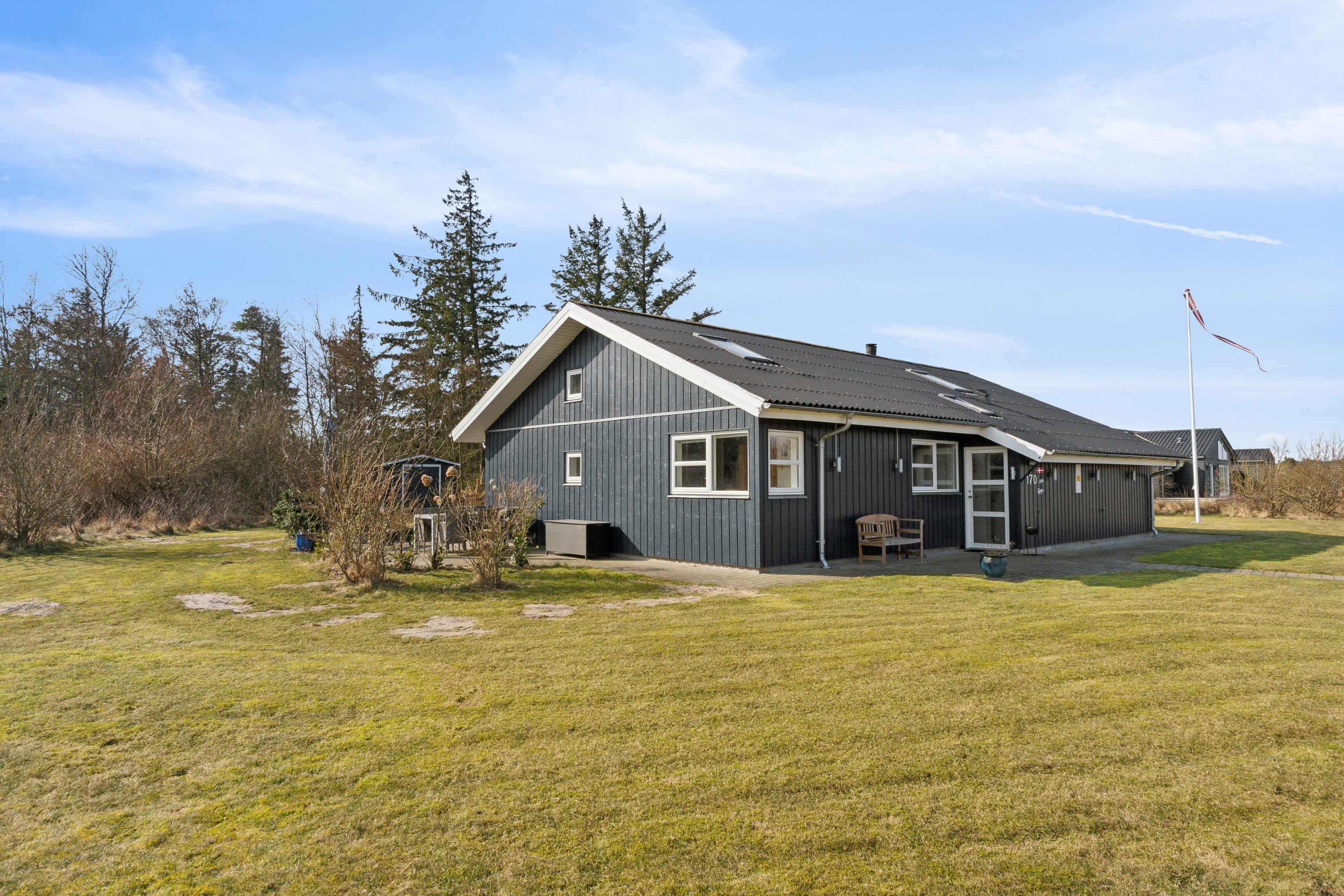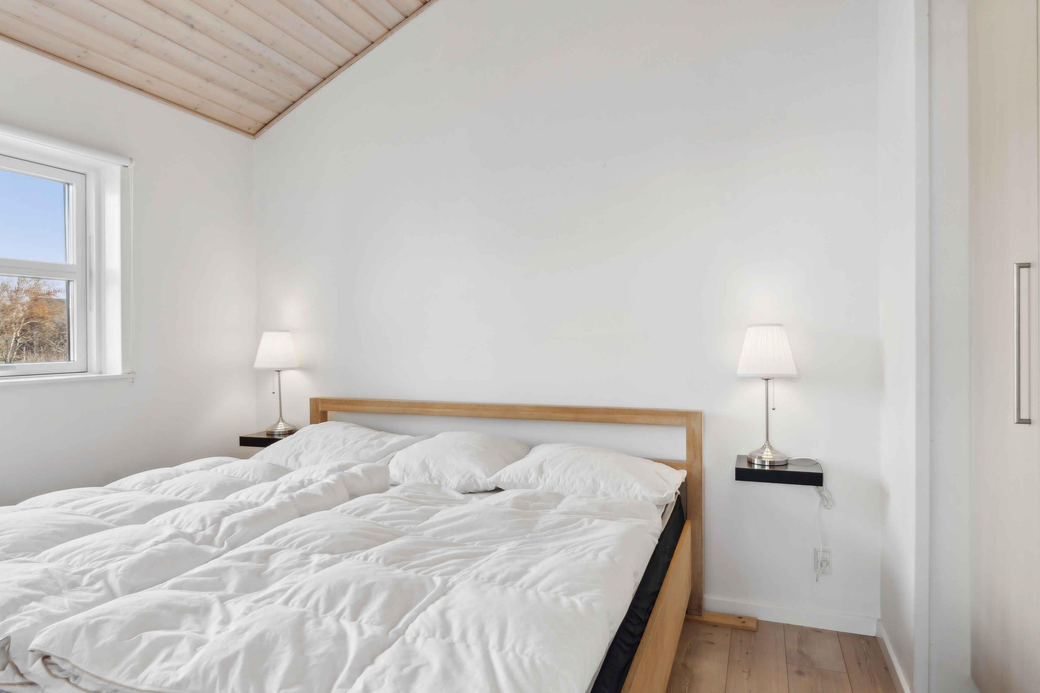 Dit vakantiehuis biedt alles wat je nodig hebt voor een ontspannen vakantie in een prachtige natuurlijke omgeving. Met 104 m² biedt het plaats aan 6 personen verdeeld over 3 slaapkamers. Het huis heeft een gezellige sfeer met een centraal geplaatste houtkachel die de keuken en woonkamer verbindt. Vanuit hier heb je toegang tot een overdekt terras, ideaal voor lange zomeravonden. Er zijn twee badkamers, waarvan één is uitgerust met een spa en sauna – een perfecte manier om de dag af te sluiten. Buiten vind je tuinmeubilair, een schommel en een vuurplaats. De omgeving biedt tal van activiteiten voor jong en oud. Probeer voetgolf, beachvolleybal of een bezoek aan de speeltuin. Alles is gemakkelijk bereikbaar. De westkust ligt op slechts 3 km afstand en biedt lange zandstranden en ruige golven. Geniet van het strand, wandelingen en prachtige zonsondergangen. Een ideale plek om te ontspannen.