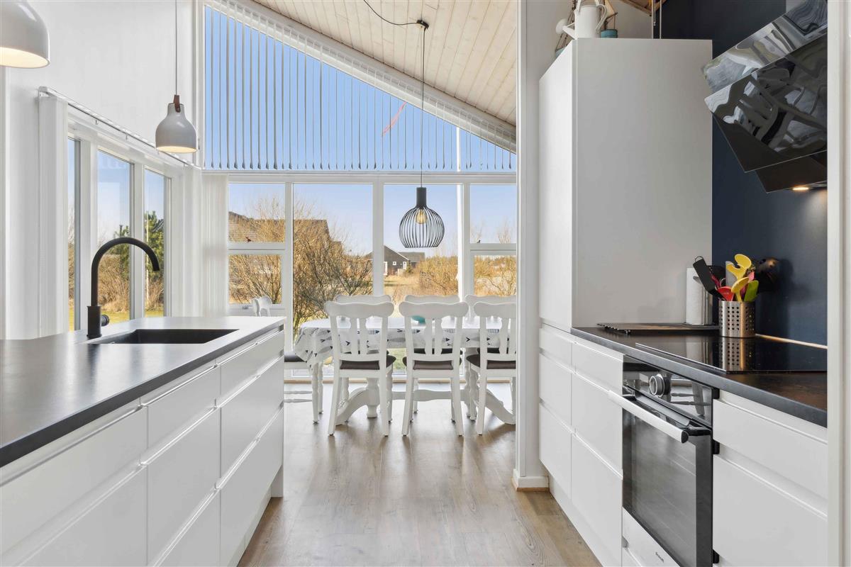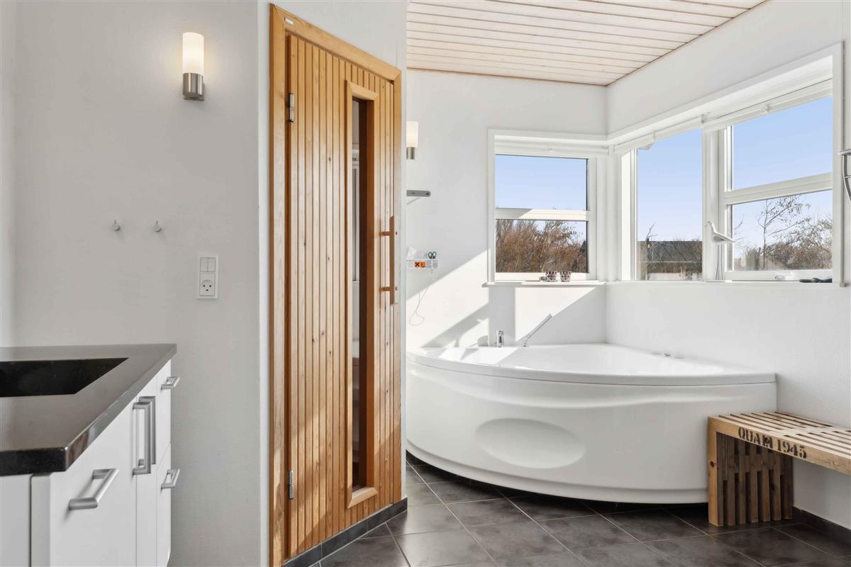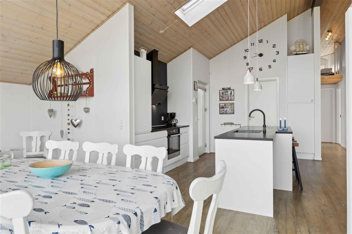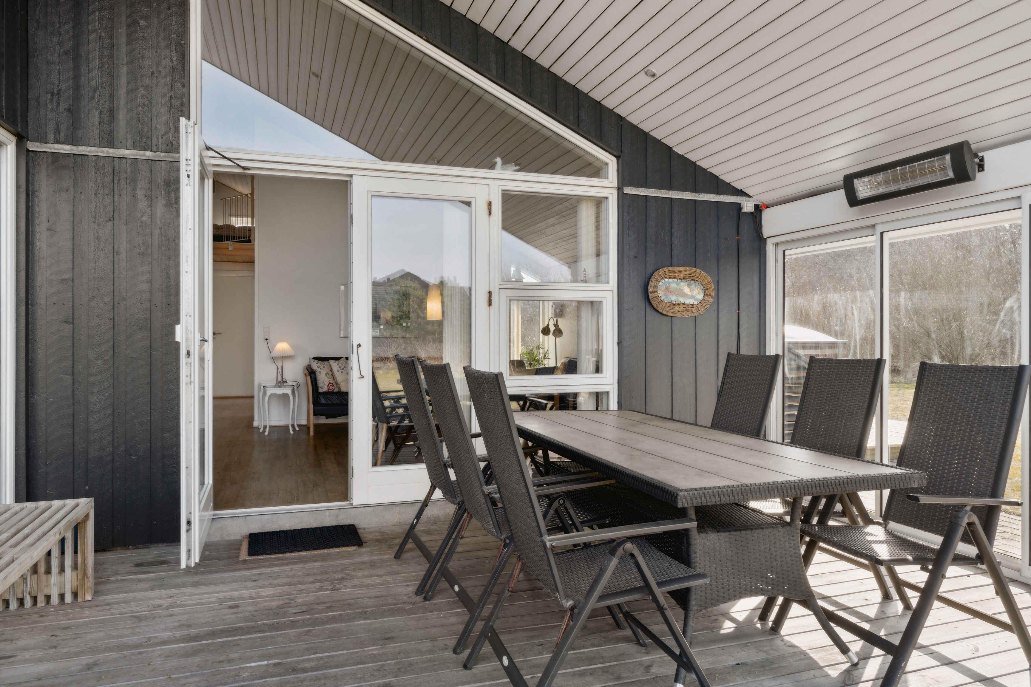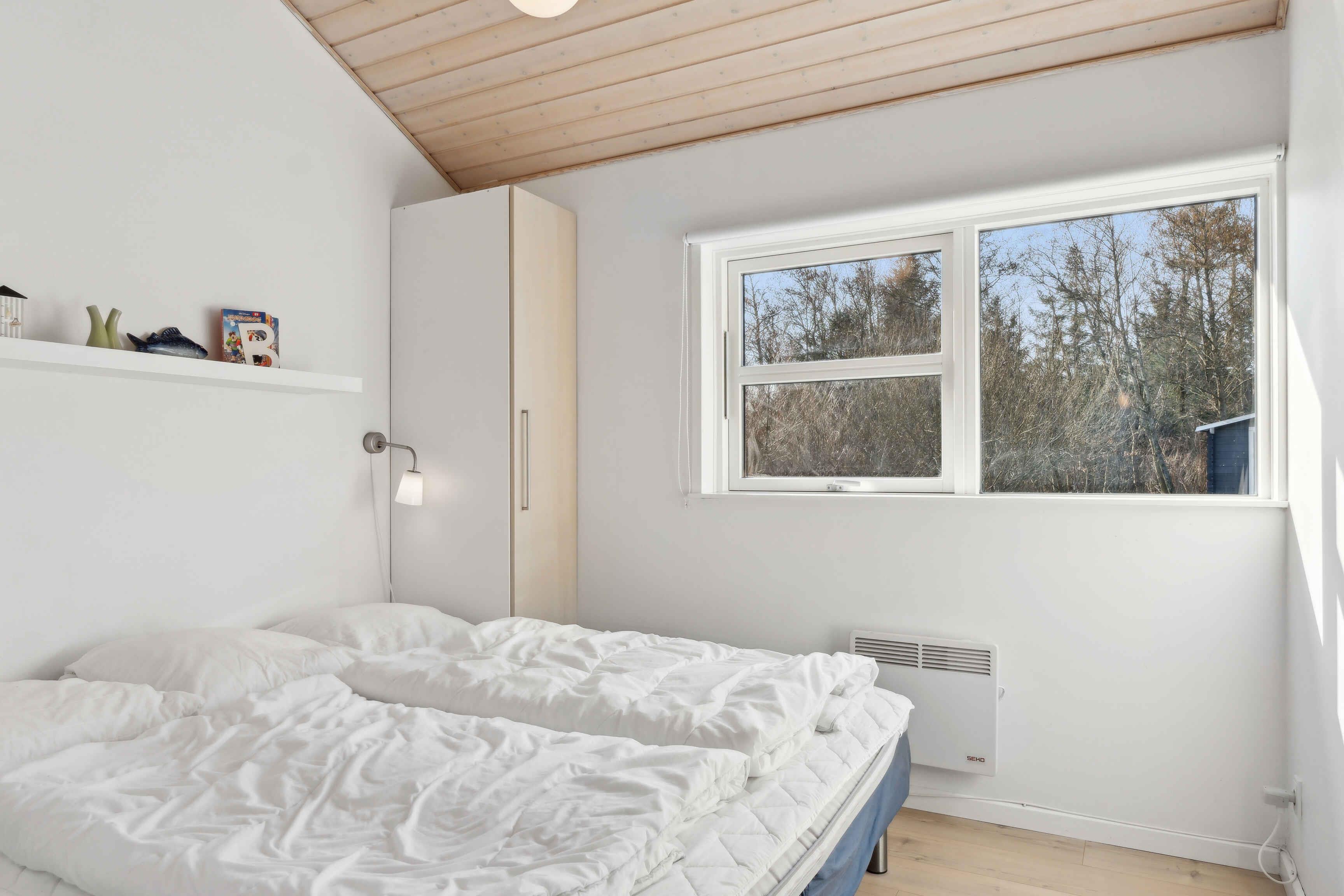 Dit vakantiehuis biedt alles wat je nodig hebt voor een ontspannen vakantie in een prachtige natuurlijke omgeving. Met 104 m² biedt het plaats aan 6 personen verdeeld over 3 slaapkamers. Het huis heeft een gezellige sfeer met een centraal geplaatste houtkachel die de keuken en woonkamer verbindt. Vanuit hier heb je toegang tot een overdekt terras, ideaal voor lange zomeravonden. Er zijn twee badkamers, waarvan één is uitgerust met een spa en sauna – een perfecte manier om de dag af te sluiten. Buiten vind je tuinmeubilair, een schommel en een vuurplaats. De omgeving biedt tal van activiteiten voor jong en oud. Probeer voetgolf, beachvolleybal of een bezoek aan de speeltuin. Alles is gemakkelijk bereikbaar. De westkust ligt op slechts 3 km afstand en biedt lange zandstranden en ruige golven. Geniet van het strand, wandelingen en prachtige zonsondergangen. Een ideale plek om te ontspannen.