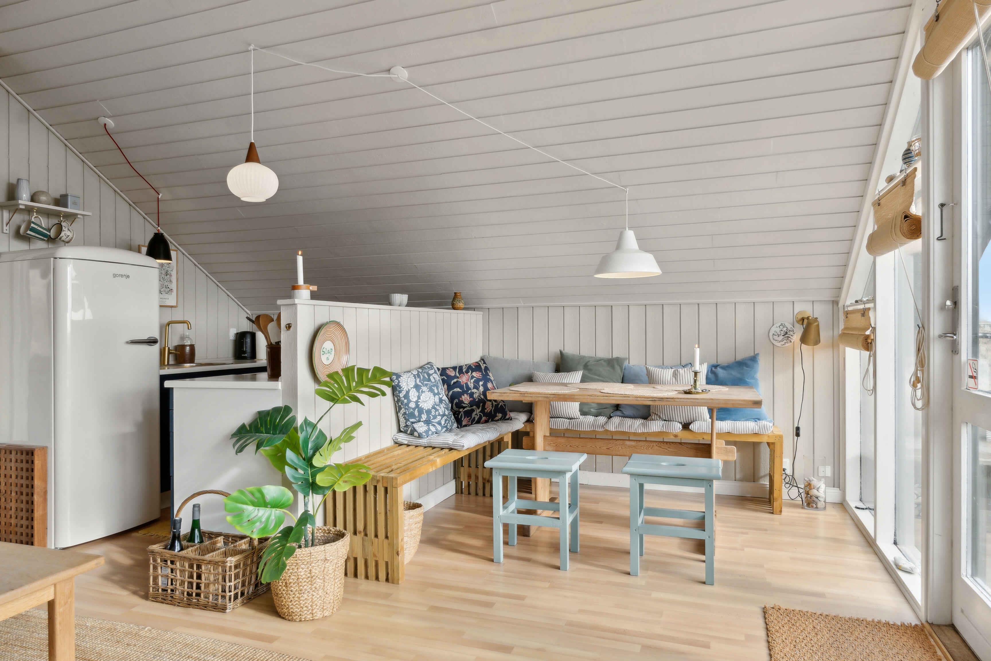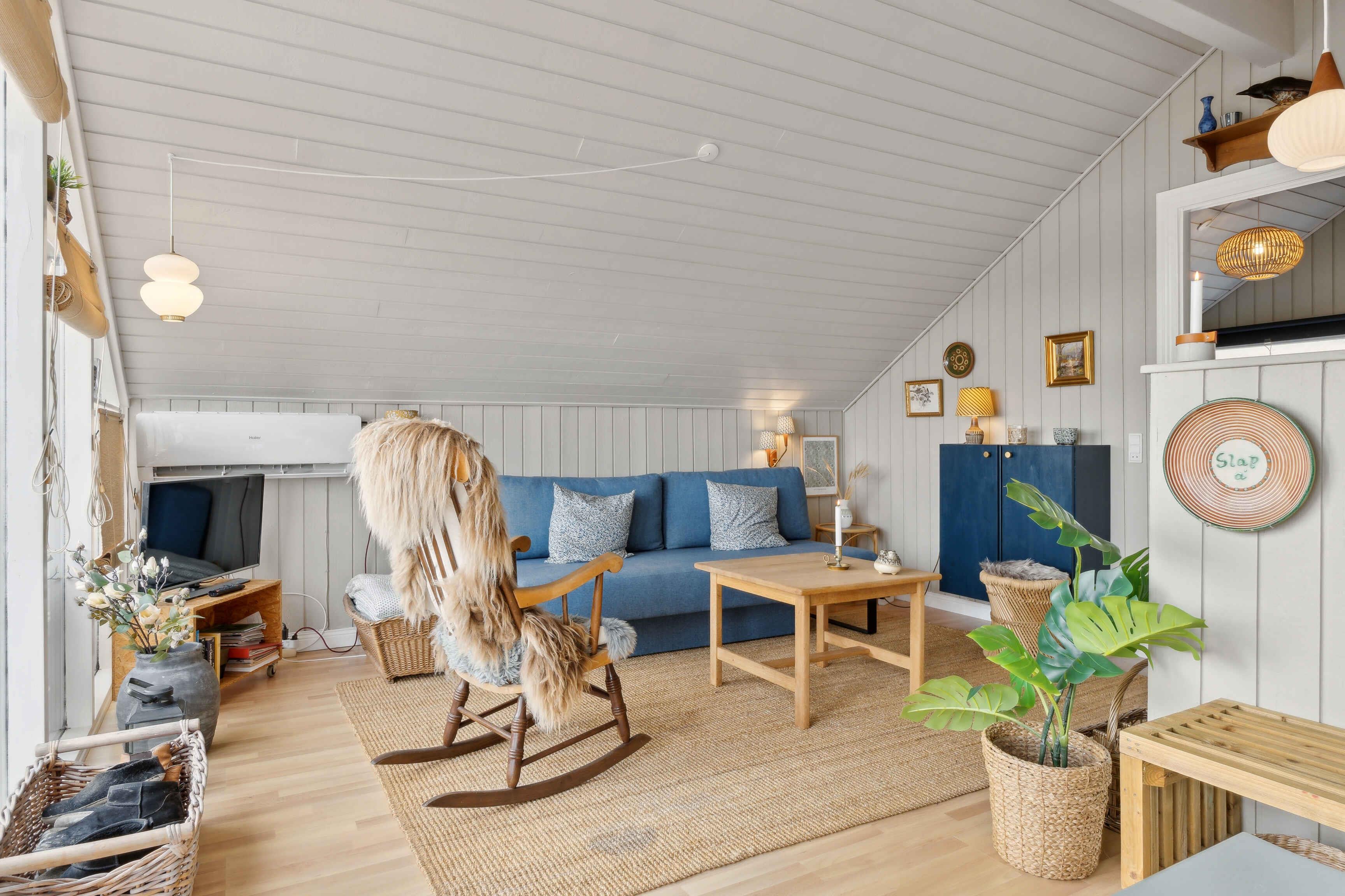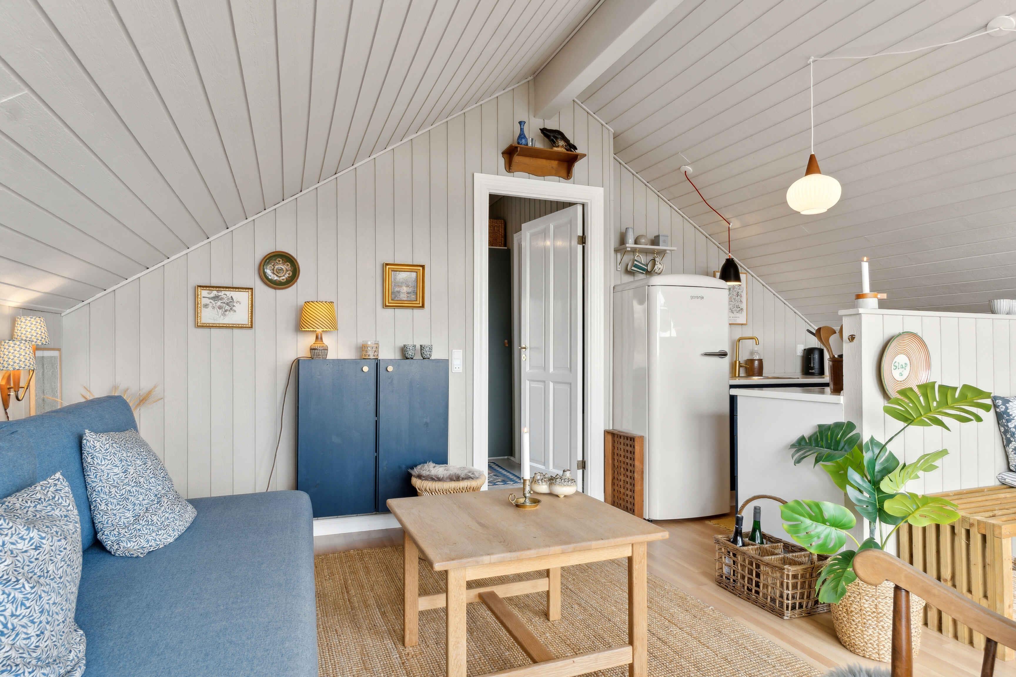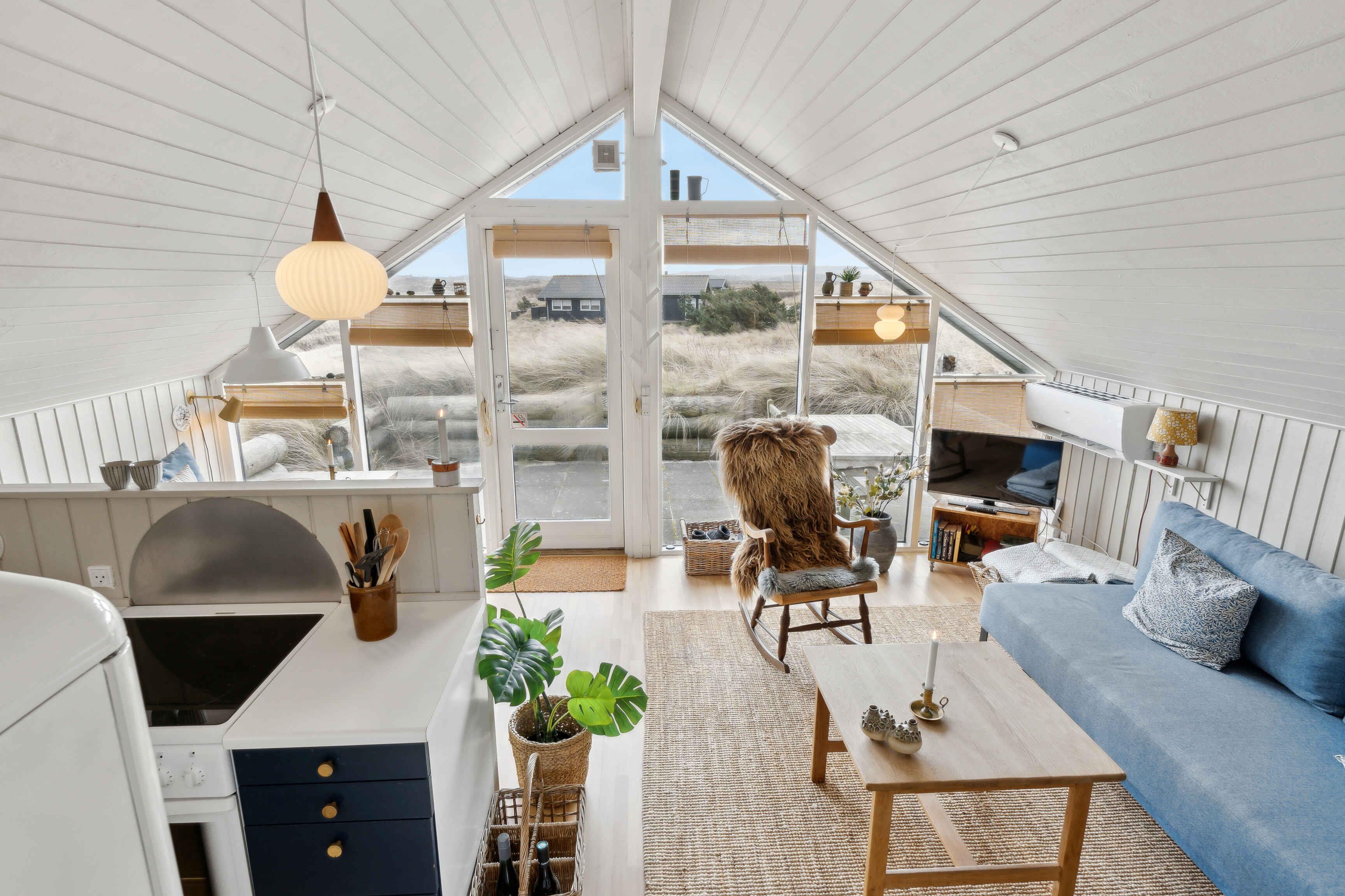 In het uiterste duingebied aan de Noordzee ligt onze prachtige kleine parel omgeven door wilde en rustieke natuur, die in alle seizoenen rust geeft tot diep in de ziel. De grootte van het huis en het interieurontwerp met klassieke Deense meubels dragen bij aan aangename momenten voor de single, het stel of het kleine gezin. Een ochtendduik in de Noordzee is altijd binnen handbereik, want het zomerhuis heeft een eigen pad naar een van de mooiste zandstranden van Denemarken, dat zelfs op een warme zomerdag niet erg druk is. Vanuit de woonkeuken heb je het mooiste uitzicht over het duin, de tranumenge en verder zie je Fosdalen torenhoog oprijzen. Het gebied bevat verschillende van de beste wandelroutes van Denemarken, en de hele omliggende natuur is beschermd door Natura2000 en bevat veel grote edelherten, zeldzame vogels en insecten. Als je meer cultuur wilt dan het plaatselijke kunstmuseum, het restaurant dat in de zomer geopend is en de ijskelder, die allemaal binnen een paar honderd meter te vinden zijn, kun je gemakkelijk naar Svinkløv gaan of langs het strand rijden over blokhutten helemaal naar de lus. Het huis zelf bevat alles wat je nodig hebt: Tweepersoonsbed in de slaapkamer, een slaapbank geschikt voor een enkele persoon (of 2 die blij met elkaar zijn), wasmachine en een keuken met alles wat je nodig hebt om eten en koffie te maken. Op het terras is er een barbecue, tafel, stoelen en strandbedden. Ongeacht het seizoen kom je in een warm huis aangezien we net een nieuwe warmtepomp met wifi hebben geplaatst waardoor ook de elektriciteitskosten tot een minimum beperkt blijven tijdens het mooie winterseizoen.