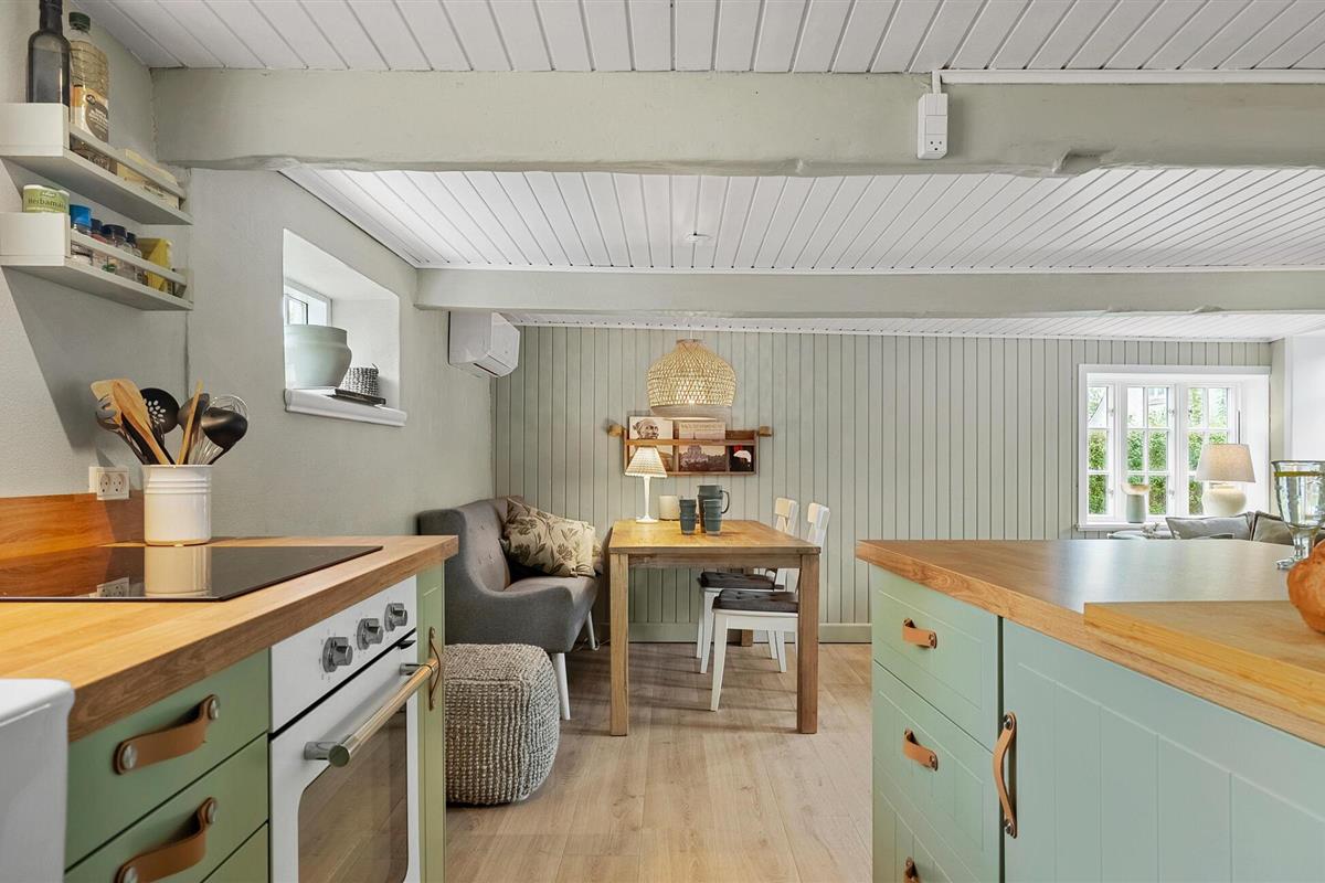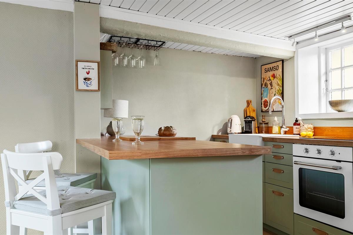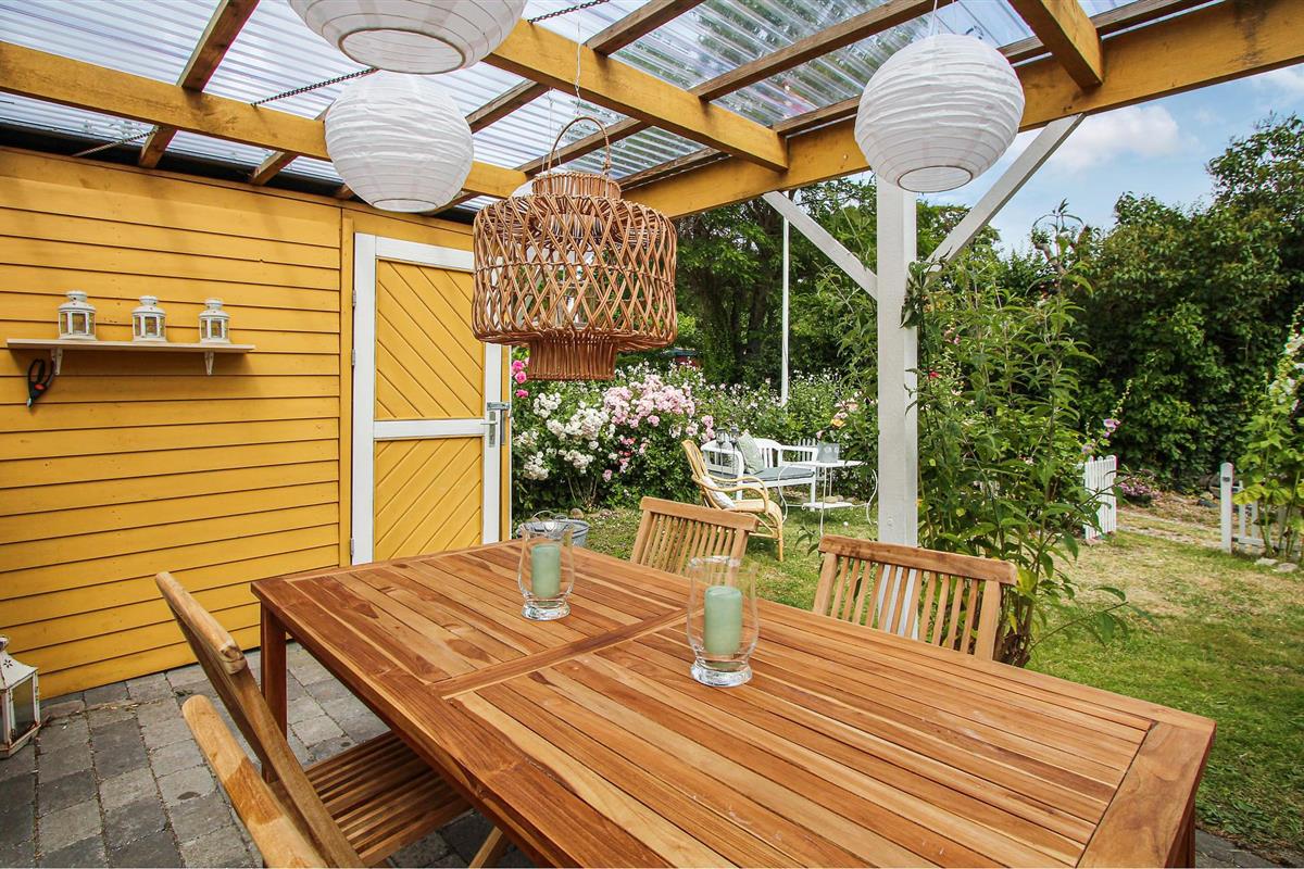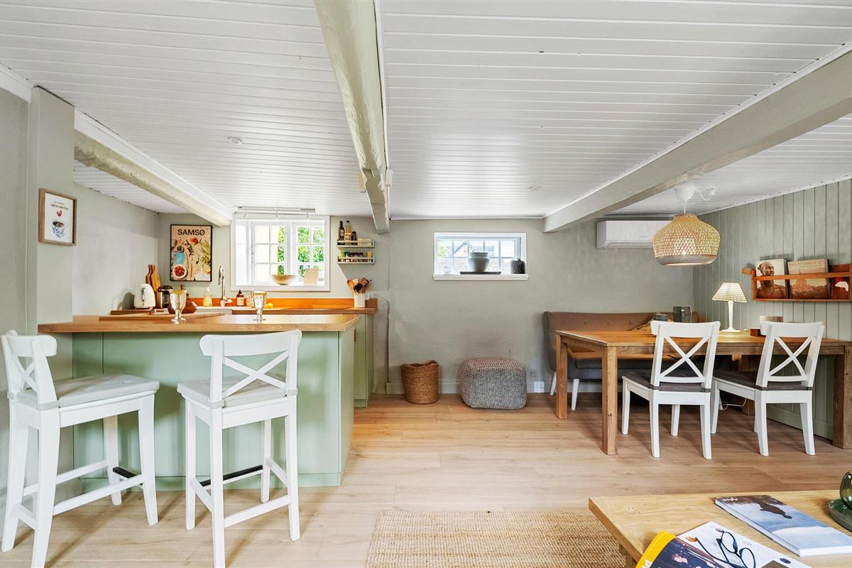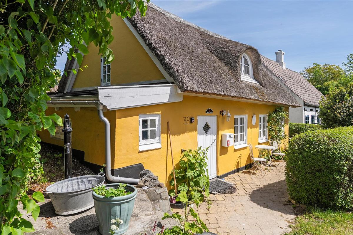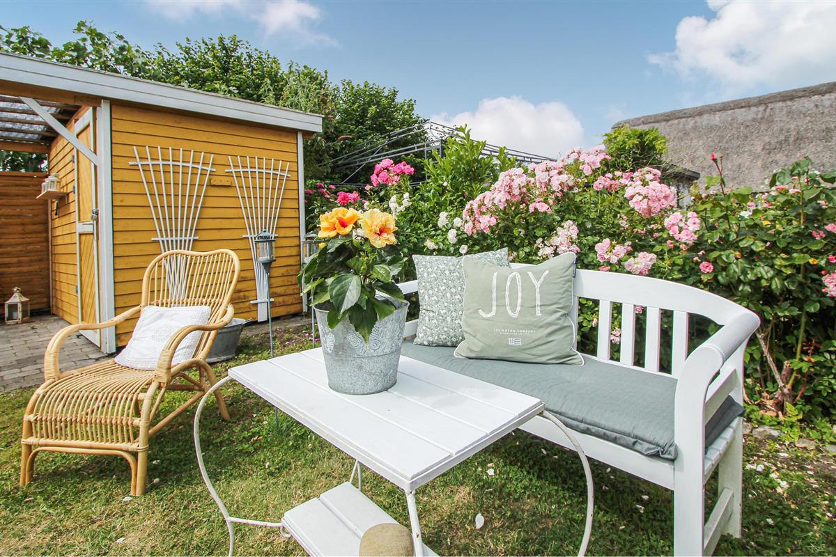 Ontdek het charmante vakwerkhuis met rieten dak en gezellig terras op het groene eiland Samsø.
