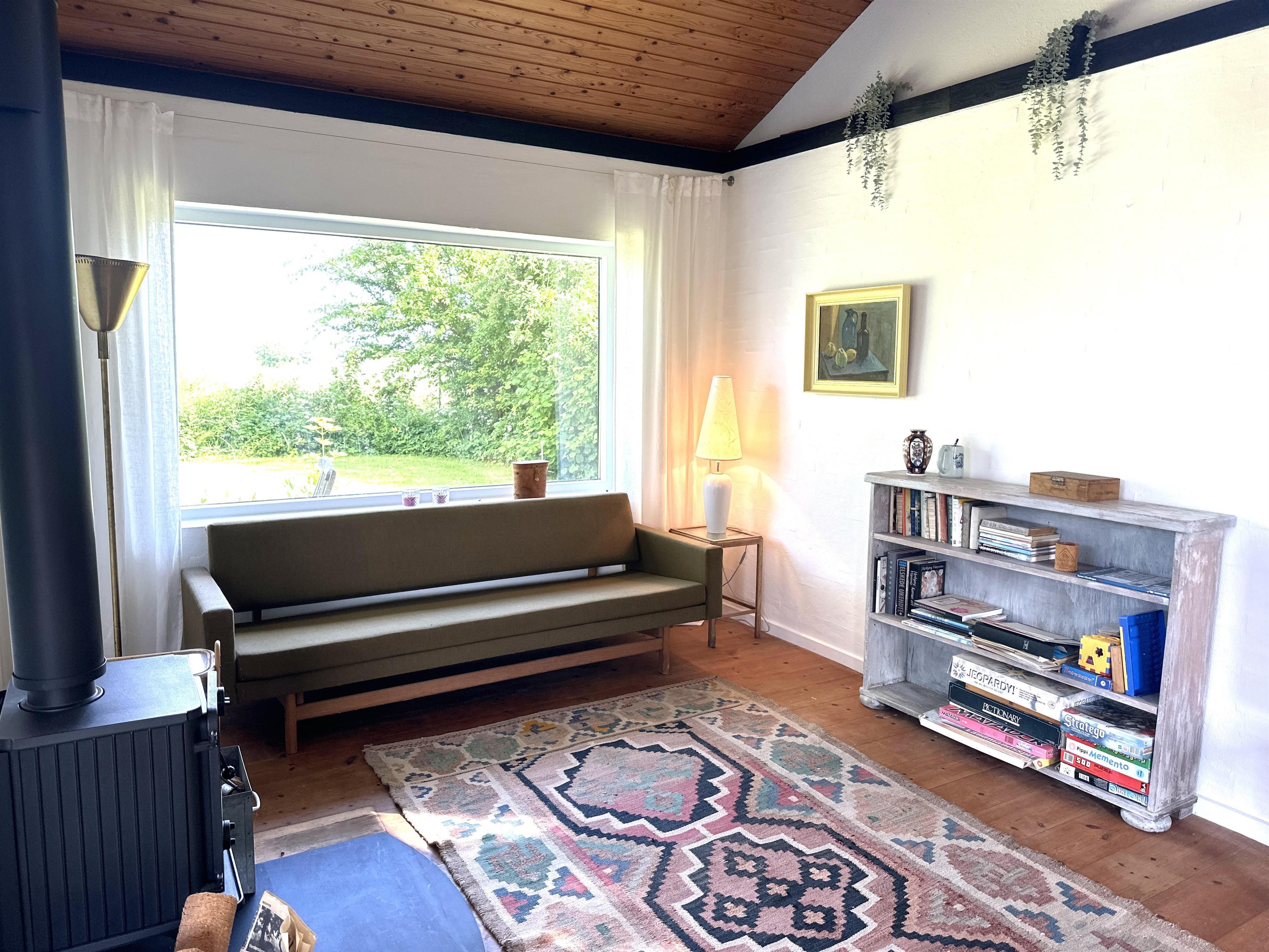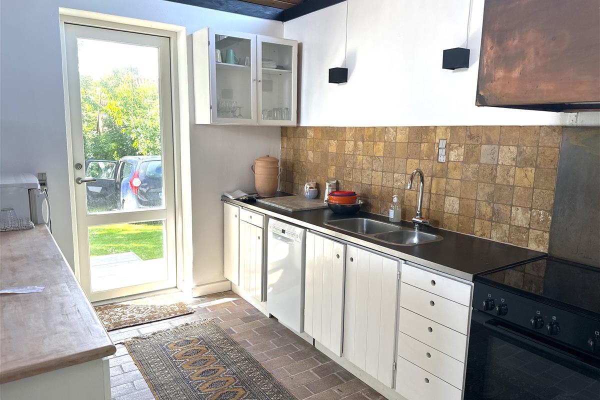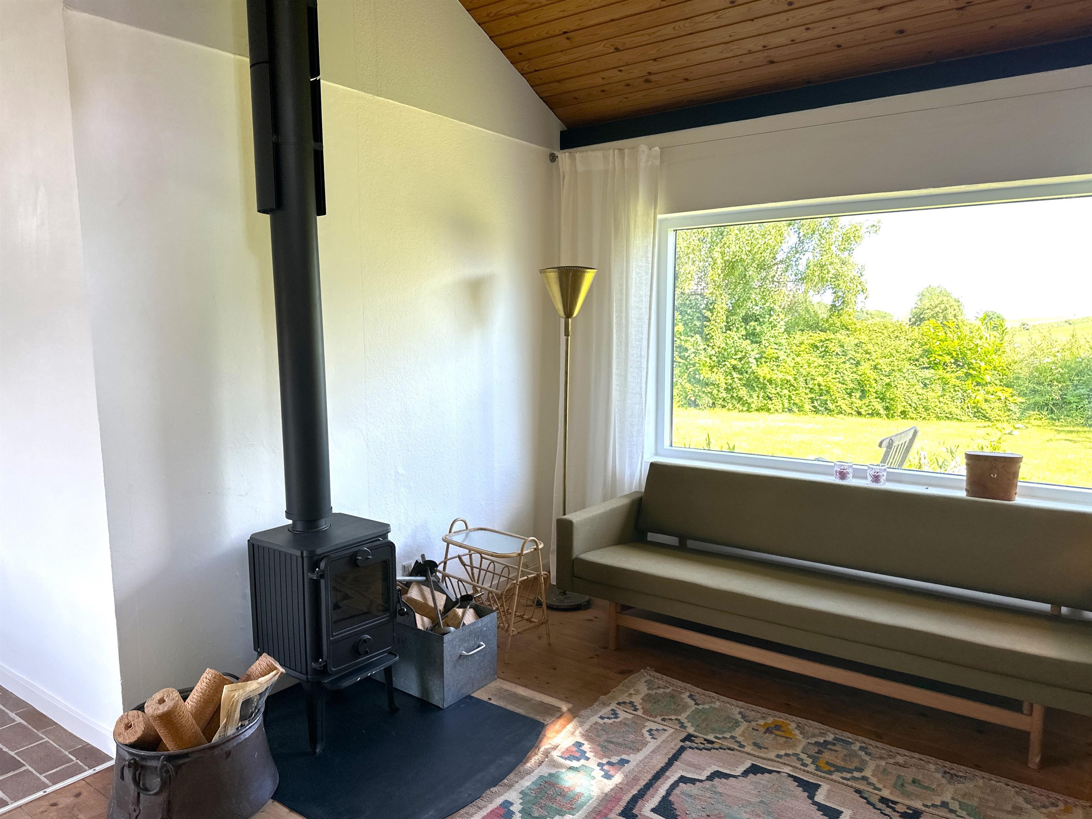 The house offers a cosy and inviting atmosphere with a bright kitchen-dining area, where you will find both a dining nook and a sofa corner – as well as a lovely wood-burning stove that spreads warmth and cosiness on cool days.
